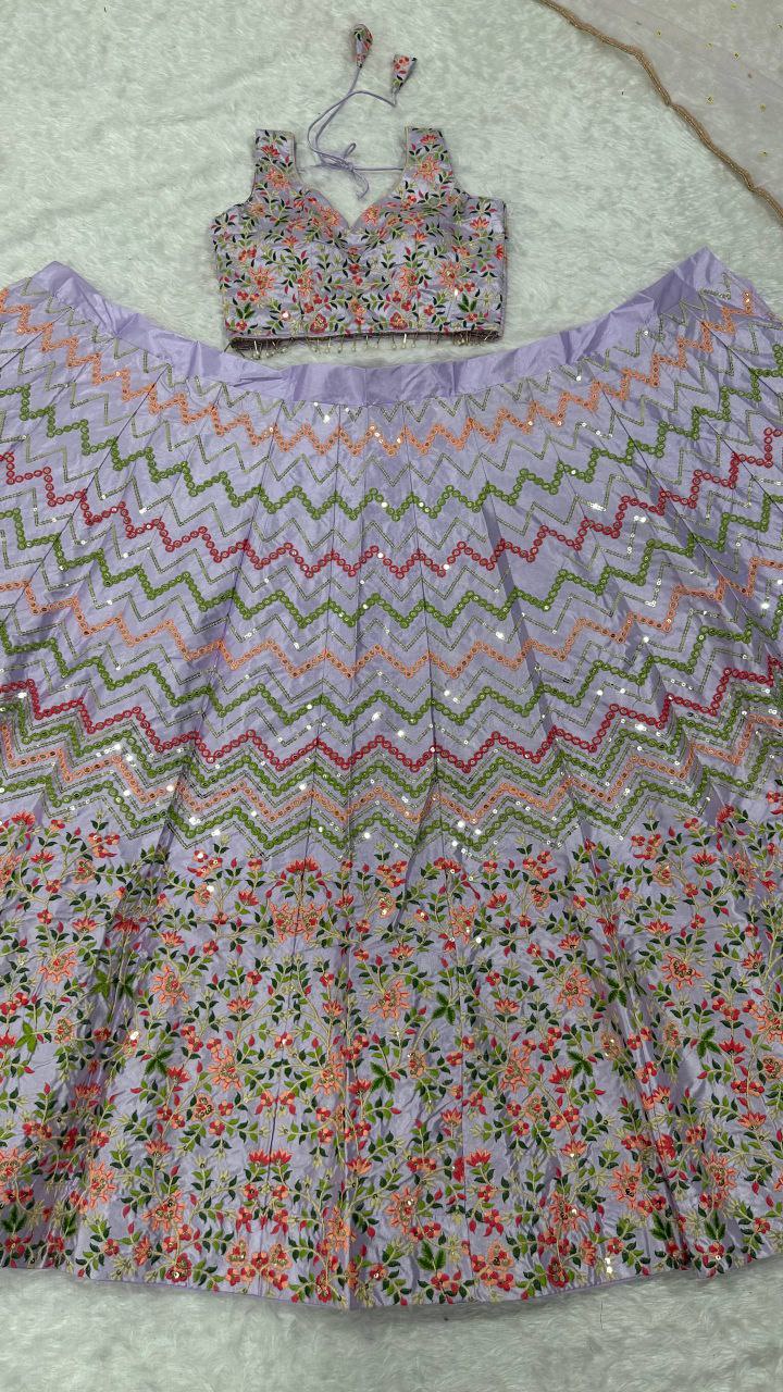 Heavy Satin Silk With Sequins & Thread Work + Tassel Border Work Blouse & Dupatta With Can Can Attach Lehenga Choli