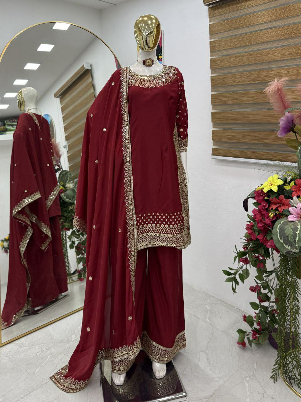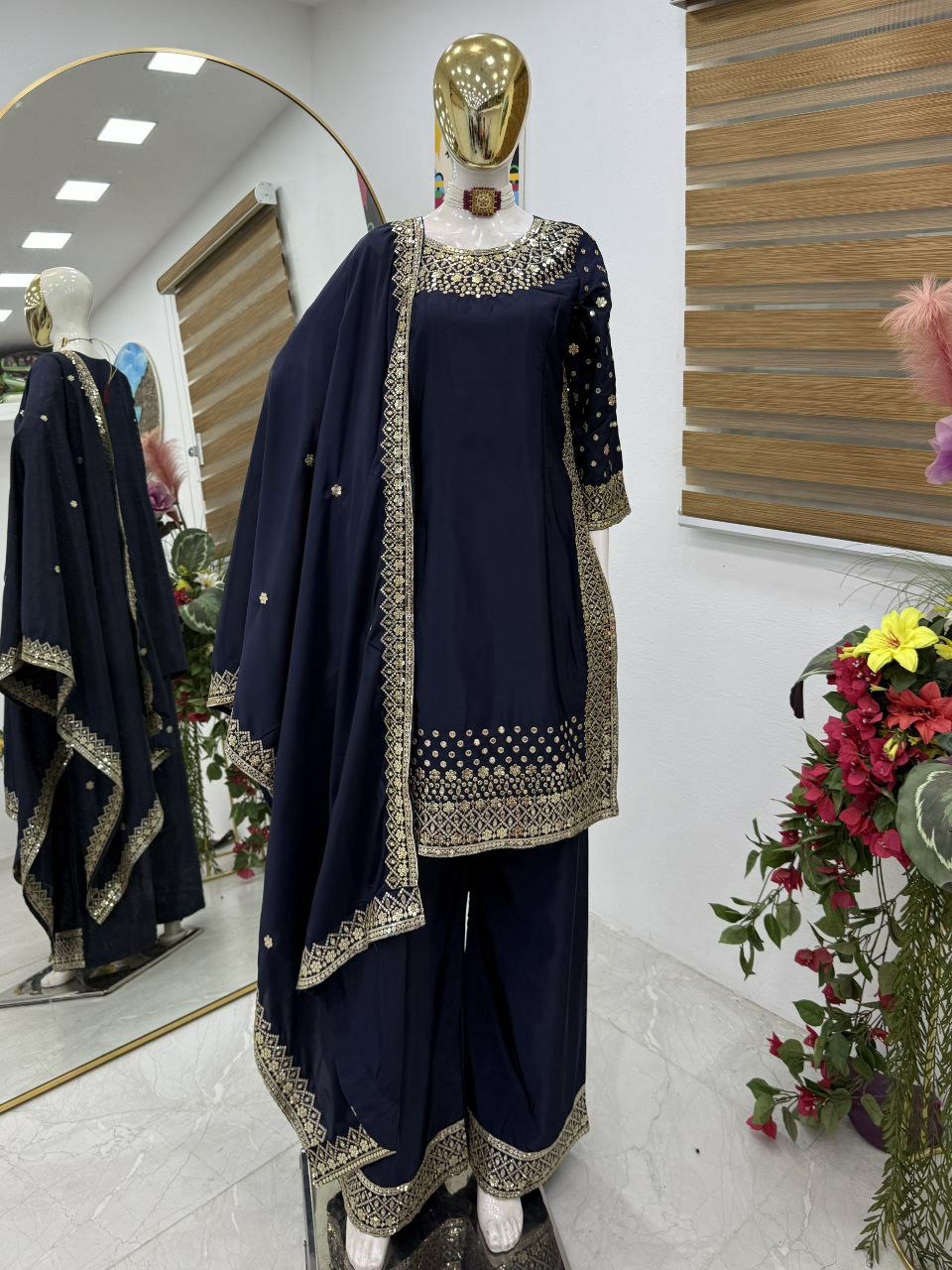 Natural Crepe With Micro Silk And Embroidery Siquence Work Sharara Dress