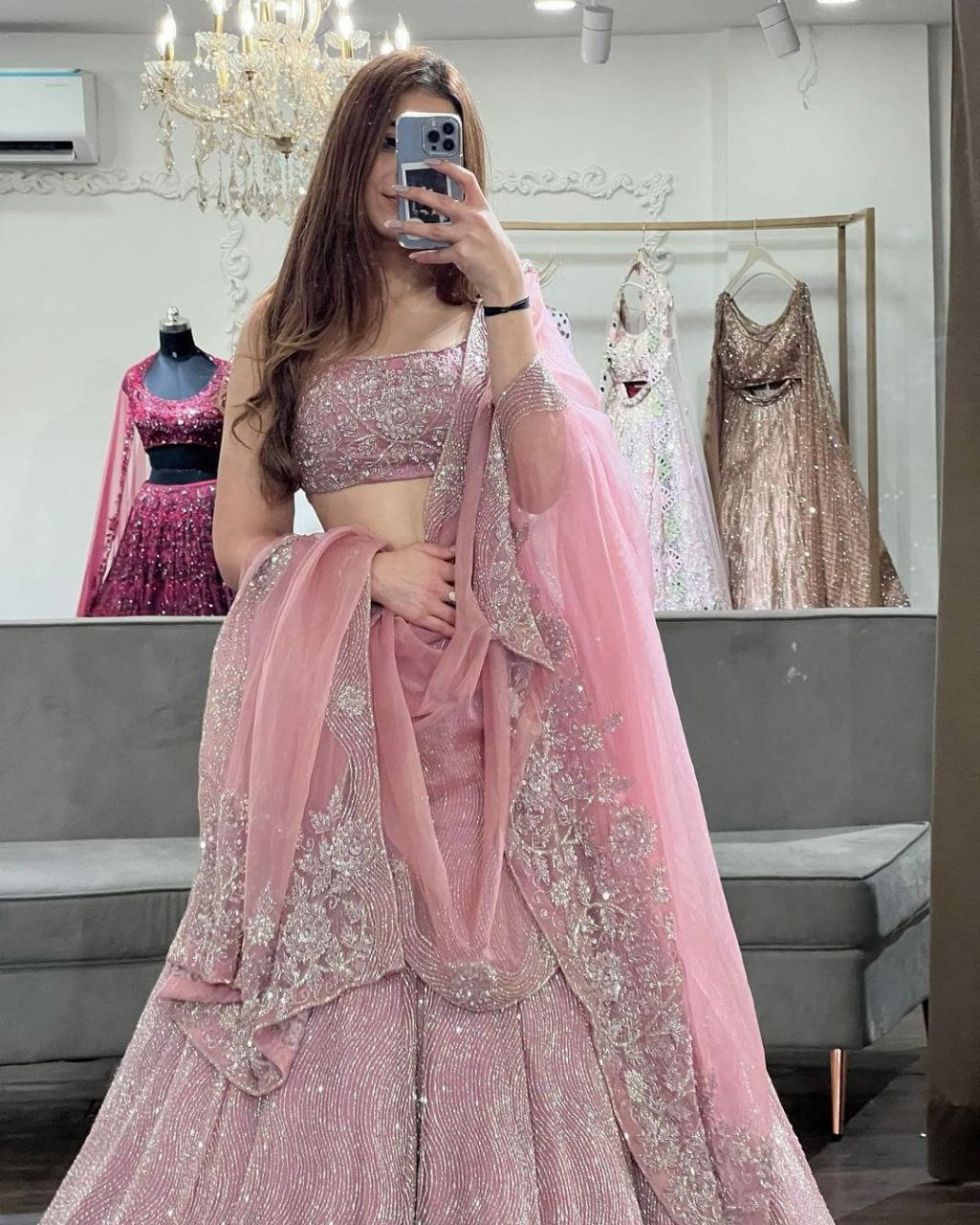 Lehenga : Premium Georgette Embellished With Beautiful Shimmer Dori  Work With Heavy Cancan And Double Inner Covering With Gud Flair