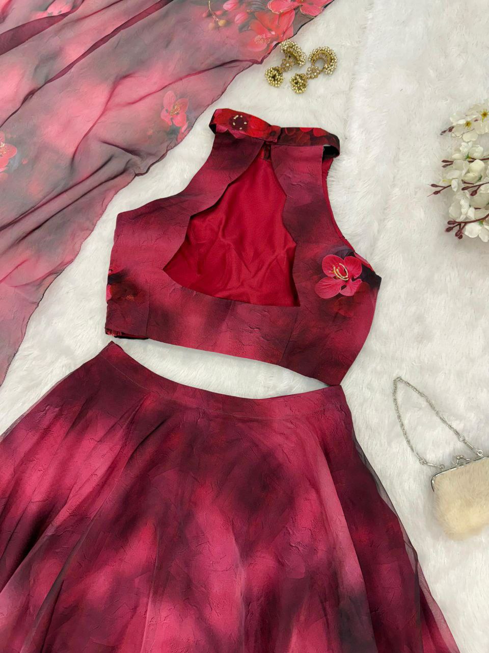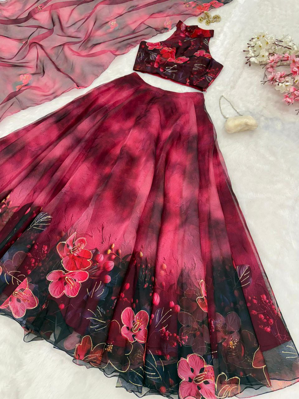 Pure Organza With Digital Print + Jari Work & 8mtr Flair Lehenga With Canvas Patta Lehenga Choli