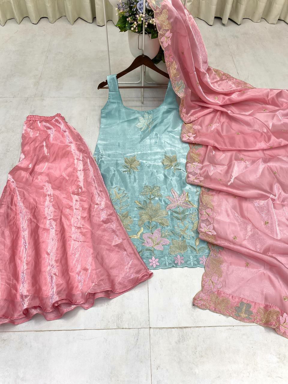 BOTH SIDE EMBROIDERY JIMMY CHU FABRIC TRADITIONAL INDIAN SALWAR KAMEEZ