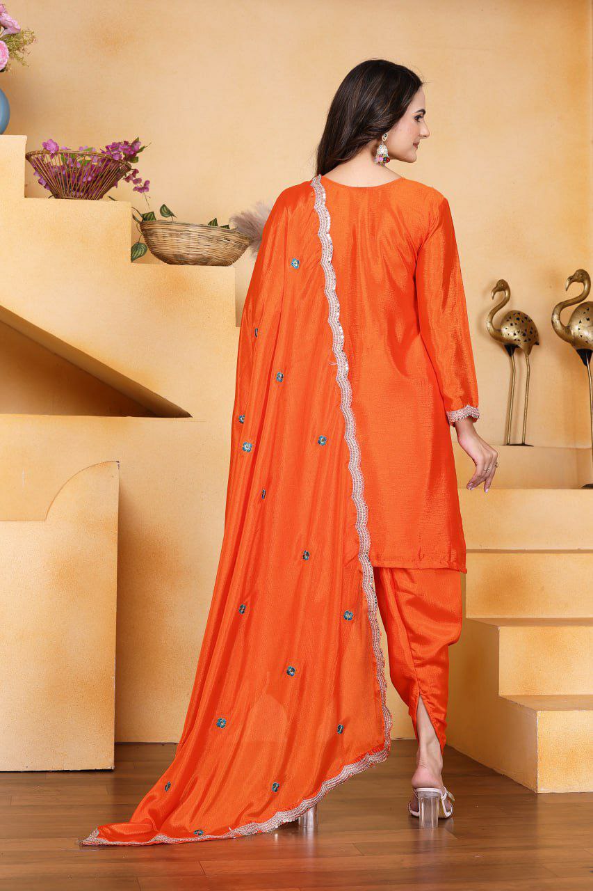 Chinon Silk And Heavy Embroidery Coding Sequence Work With Elastic Dhoti Salwar