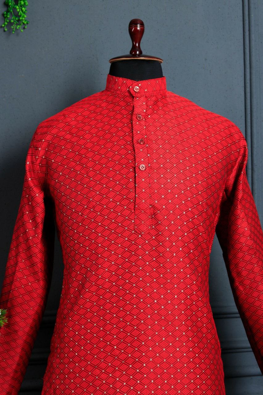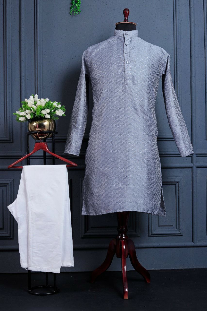 Designer Jacquard Printed Stitched men's Festive Kurta