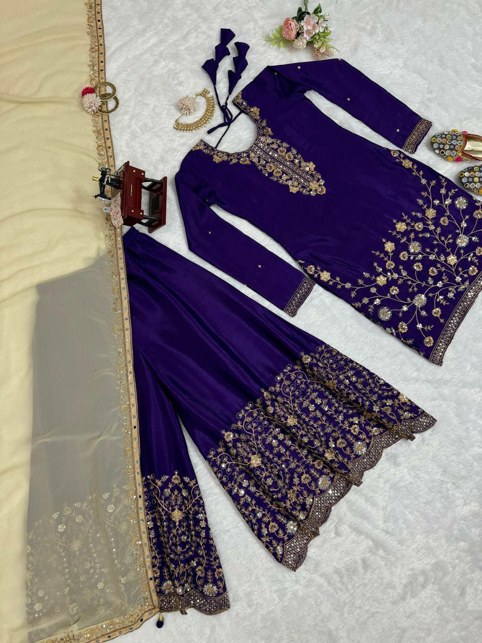 Designer Suit on Chinon Silk febric with Inner and Sequnce With Thred work and Sharara
