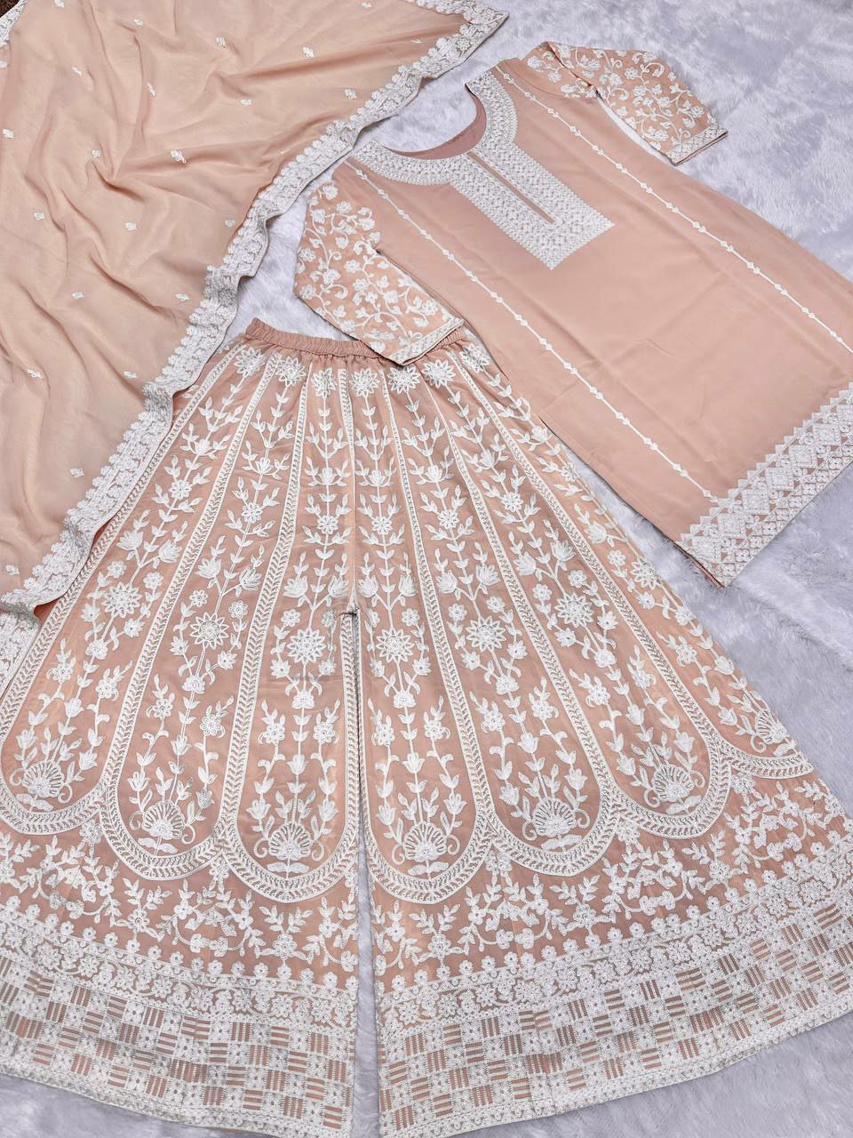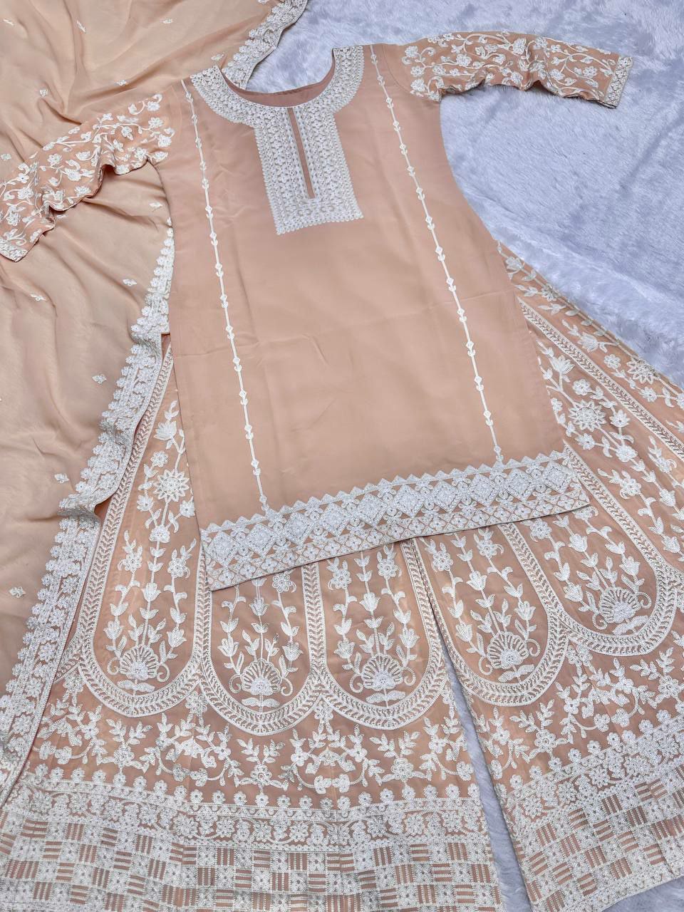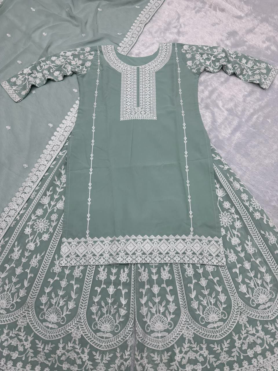 Faux Georgette And Full Sleeve With Work Kurti Set