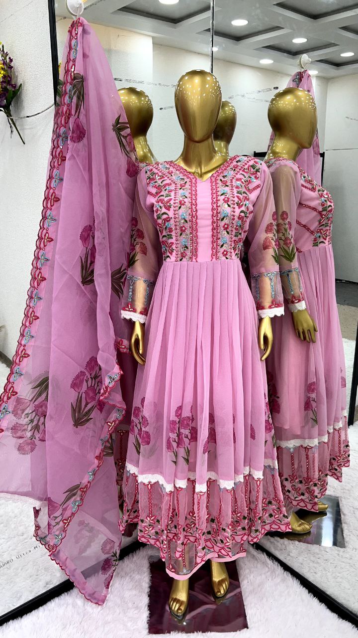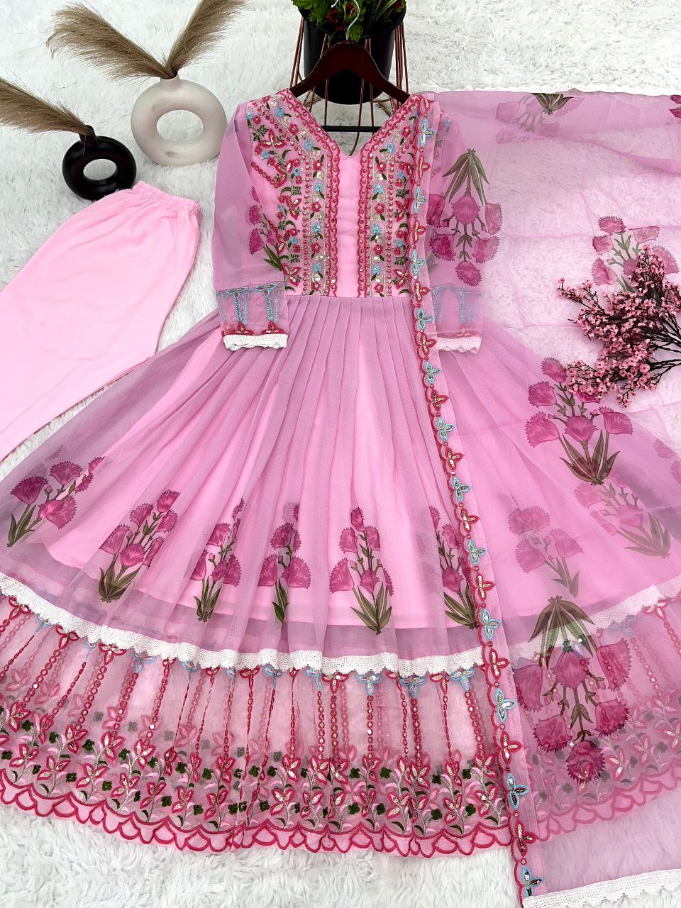Faux Georgette and Heavy Net With Heavy Embroidery WorkWith Digital Print Work Full Sleeve Gown