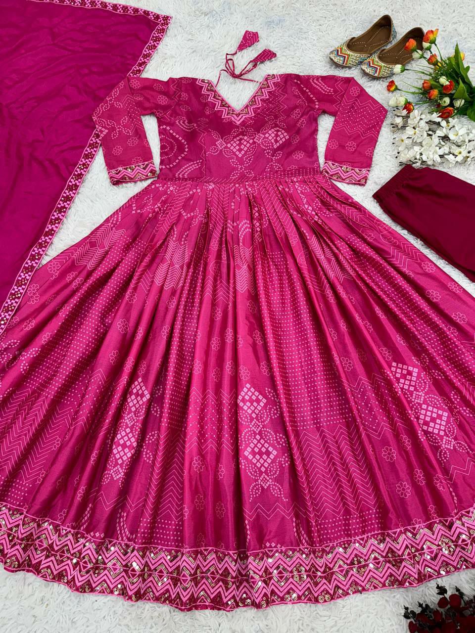 Faux Georgette With Digital Print Work and Heavy Embroidery Sequence Work Pink Gown