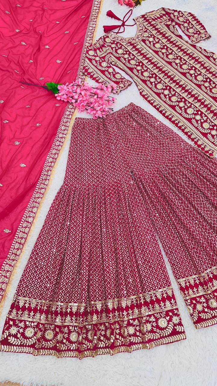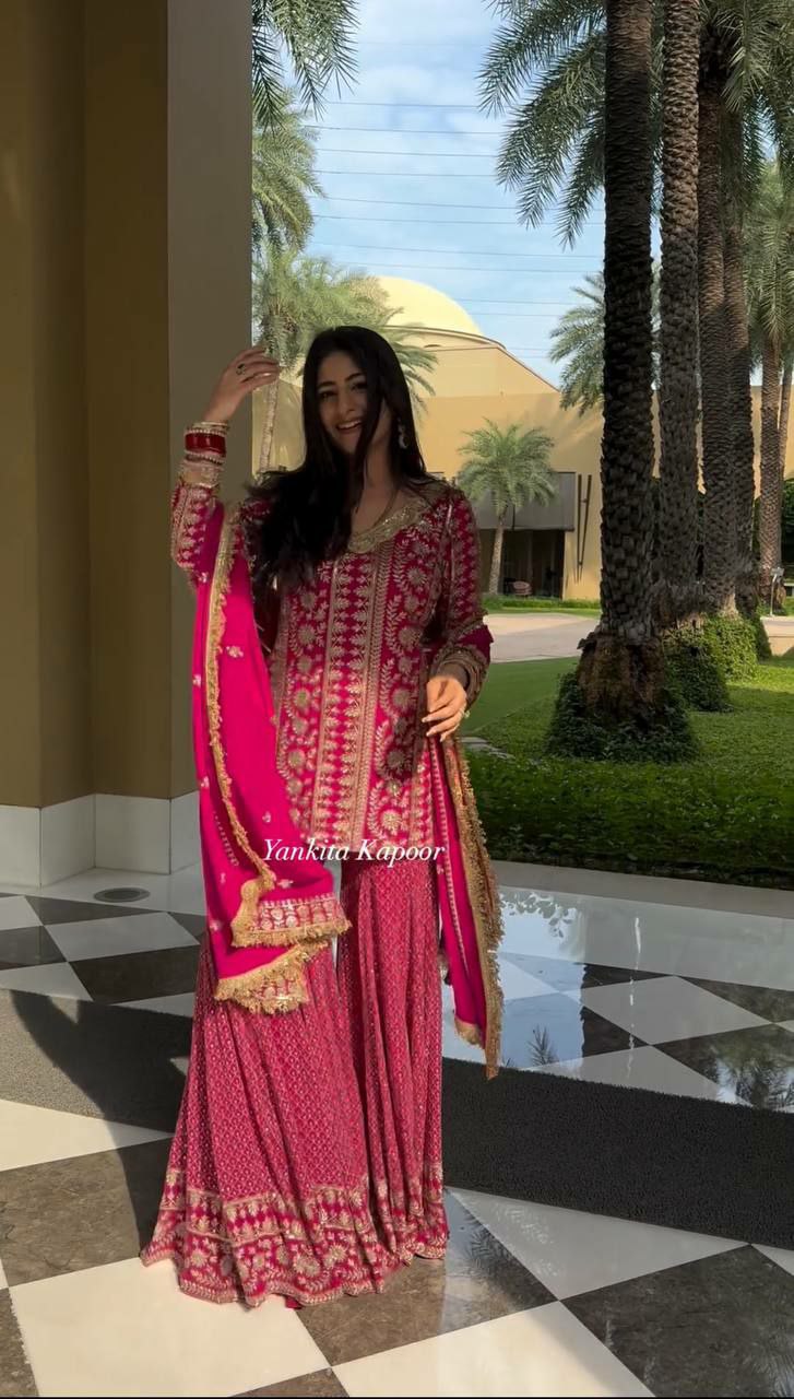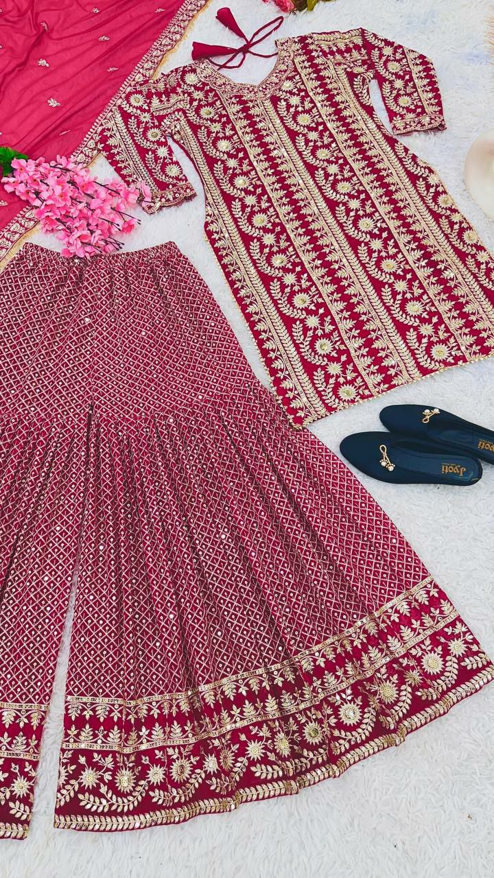 Faux Georgette With Heavy Embroidery Sequence Work Pink Kurti With Full Sleeve