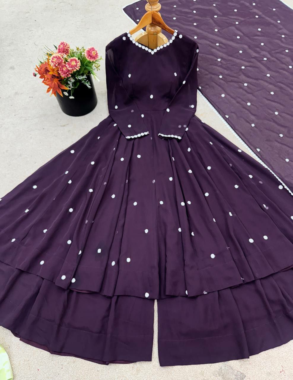 Faux Georgette With Heavy Micro Cotton & Heavy Embroidery Work With Fully Flair Gown