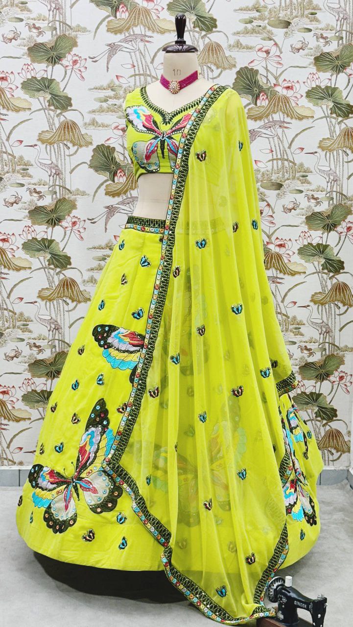Faux Georgette With Sequins And Thread Embroidery Work With Cancan And Canvas Lehenga Choli