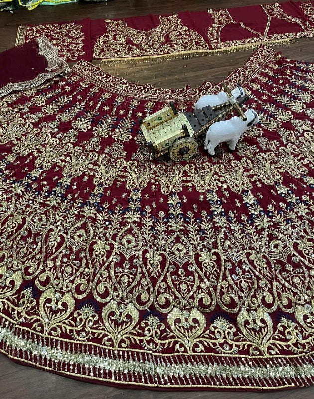 Fox Georgette Lehenga work-EmbroiderySequins Work With Cancan Canvas Patta Lehenga Choli