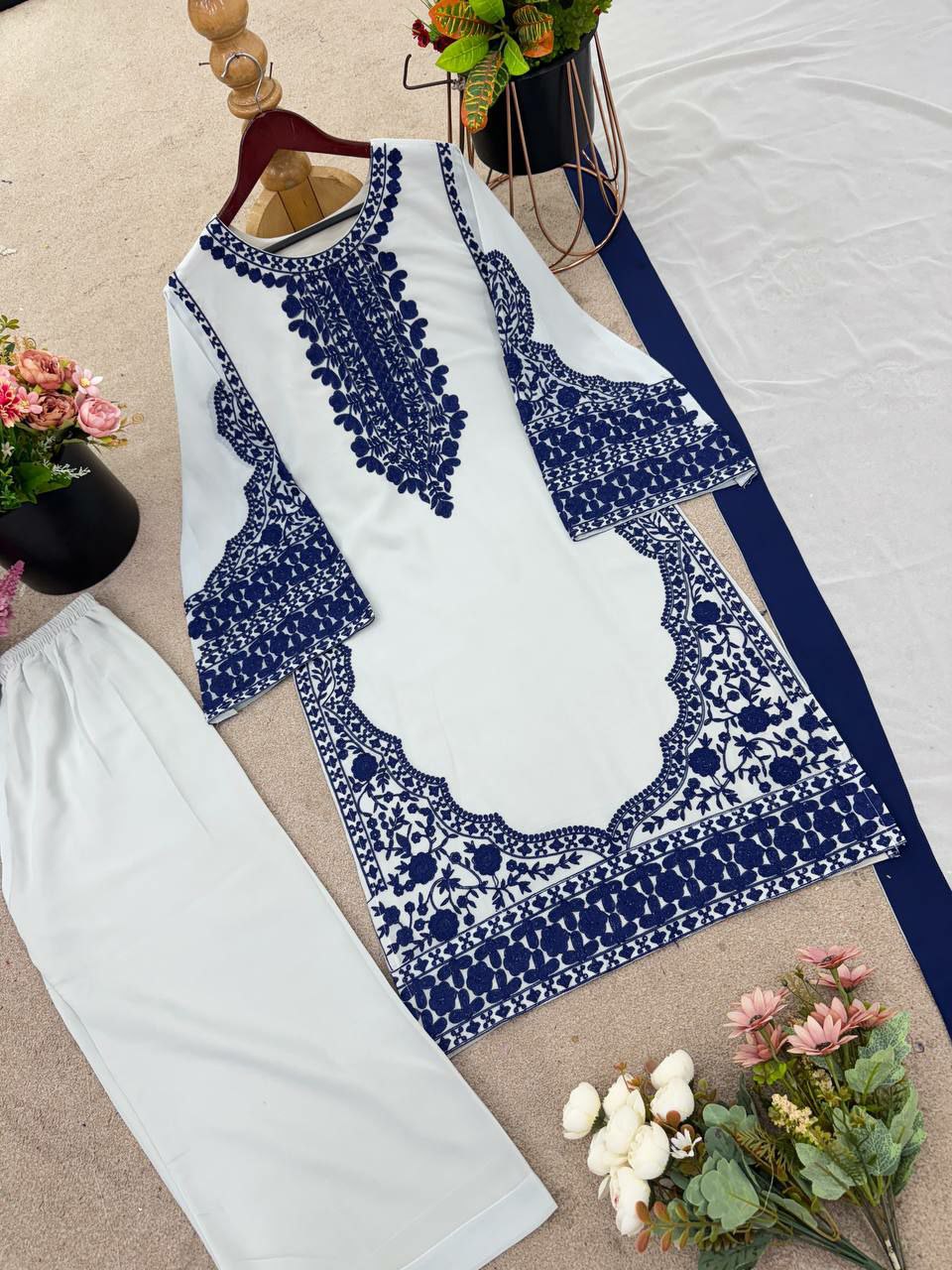 Fox Georgette With Heavy Micro Cotton And Embroidery Work Palazzo Suit