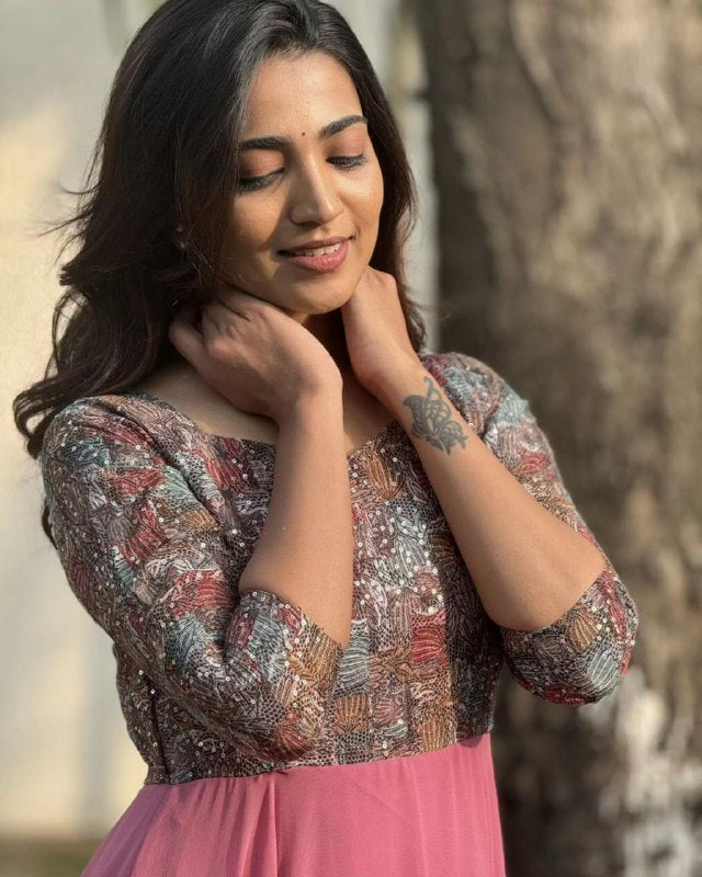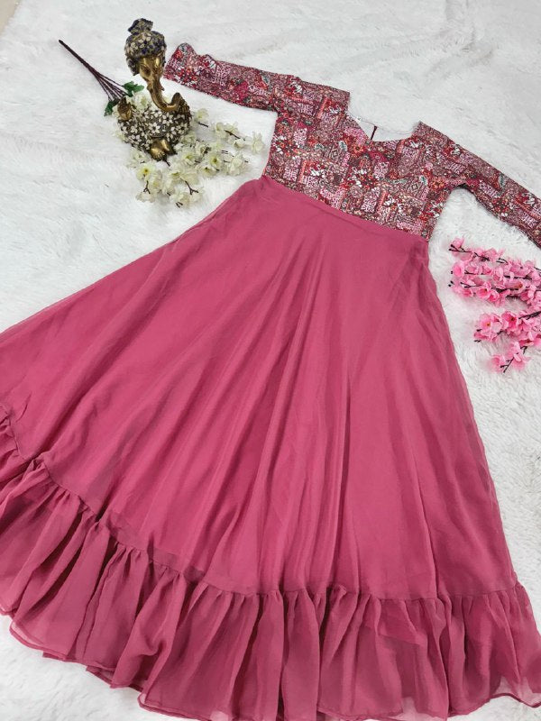 Gown Fabric -This set features a Cotton and georgette with Attractive Embroidery and Print work And full Flair for eye catching look