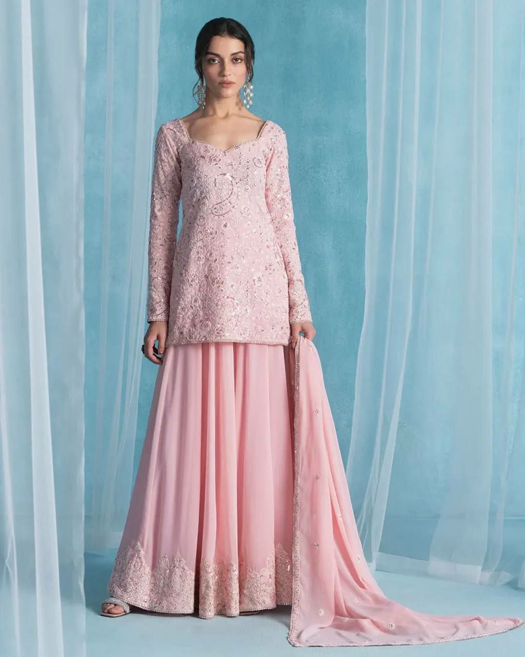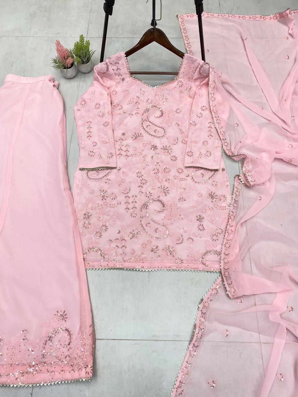 GEORGETTE WITH MICRO INNER AND SEQUANCE EMBROIDERY WORK PALAZZO SUIT
