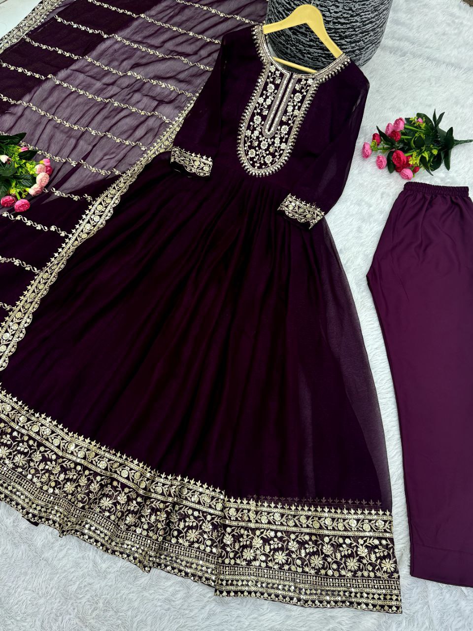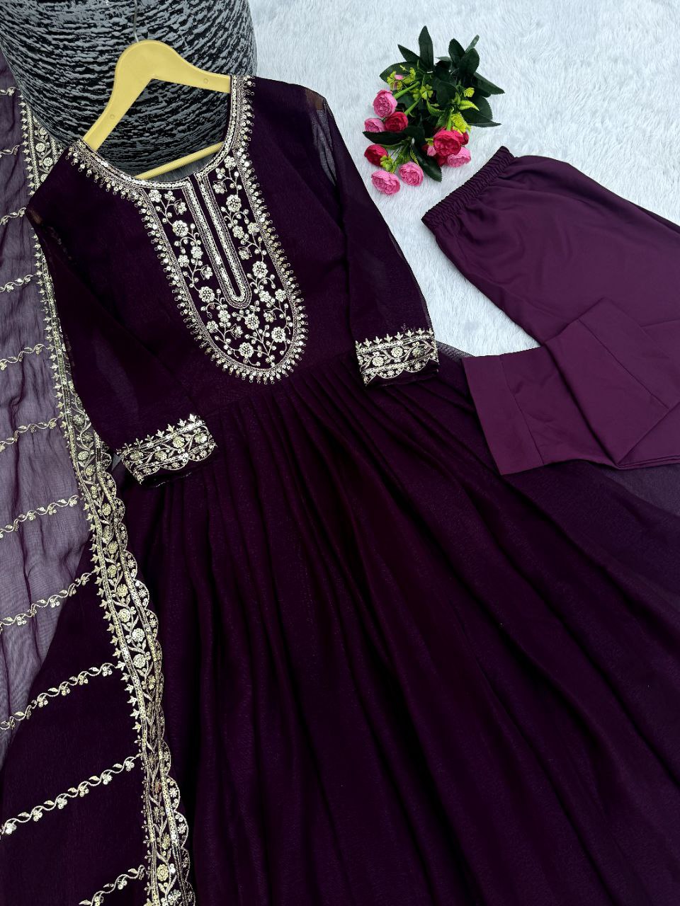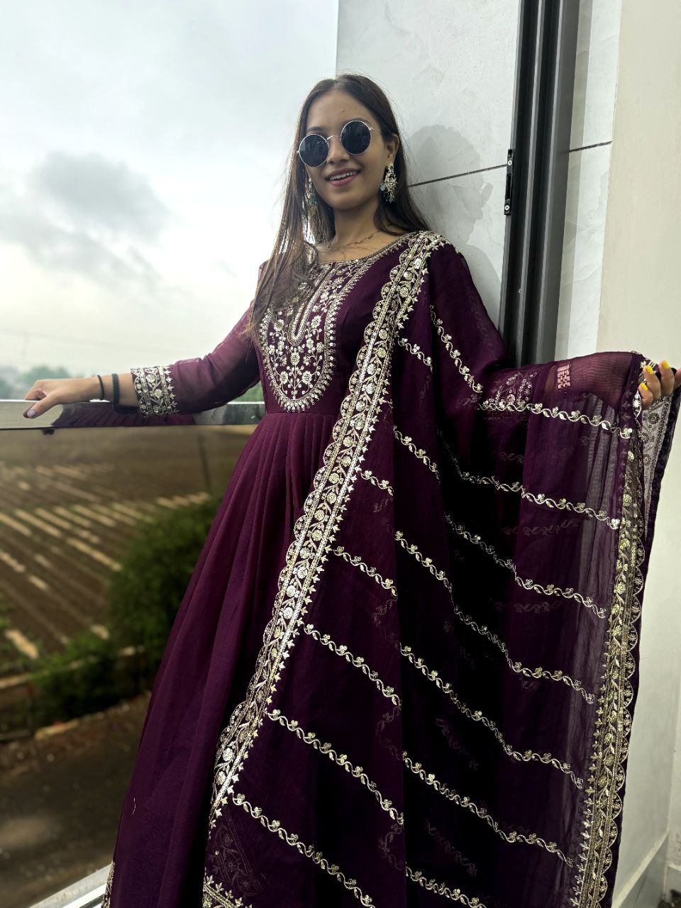 Heavy Blooming Shimmer Silk And Sleeve With Work Gown