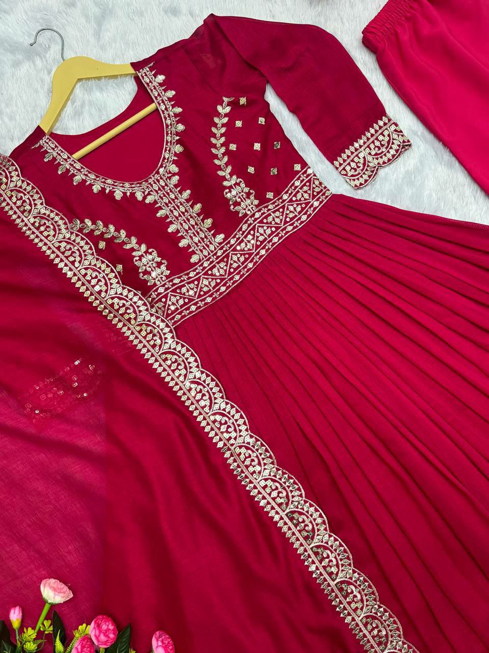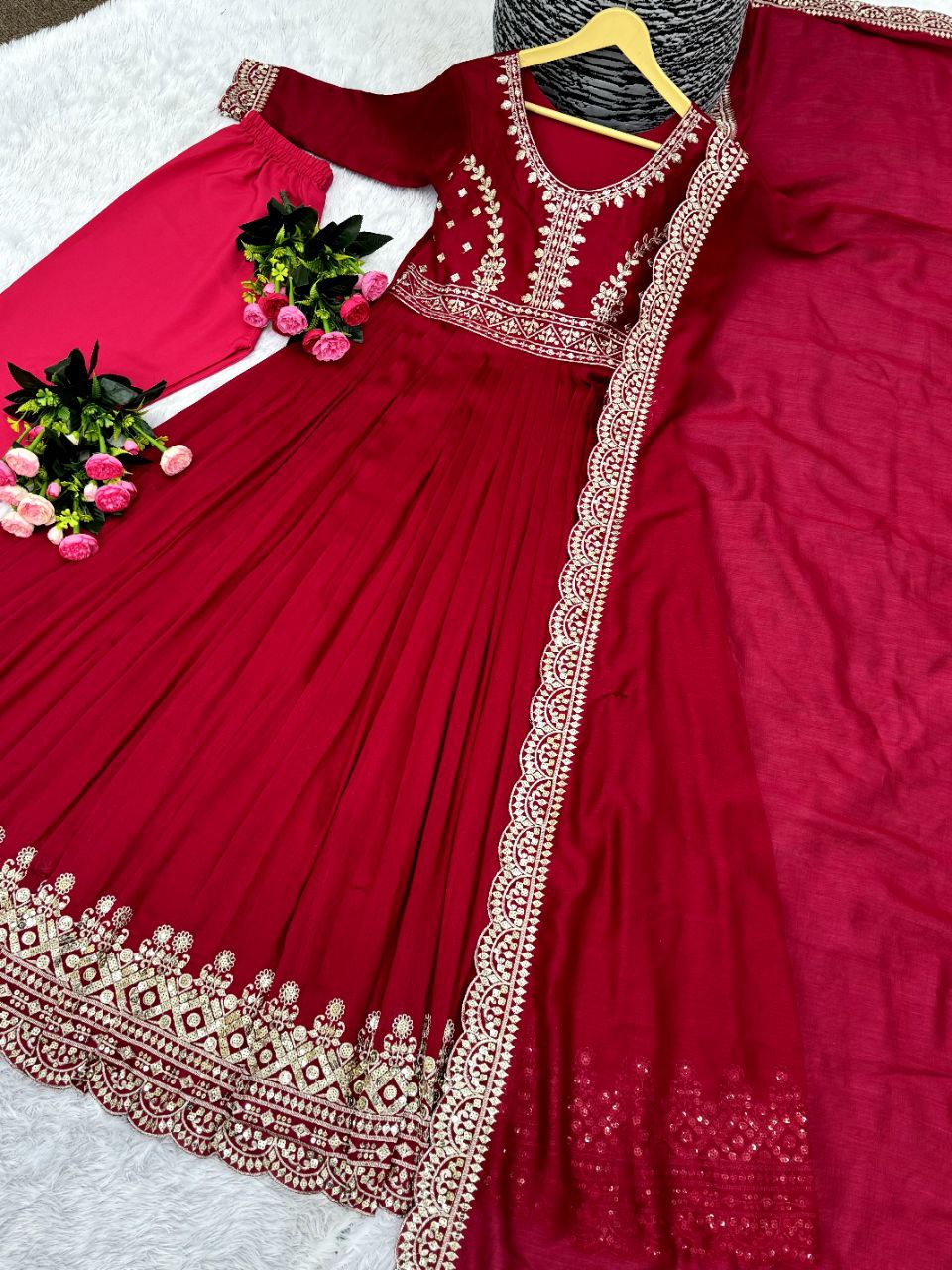 Heavy Blooming Vichitra Silk And Sleeve With Work Gown Work