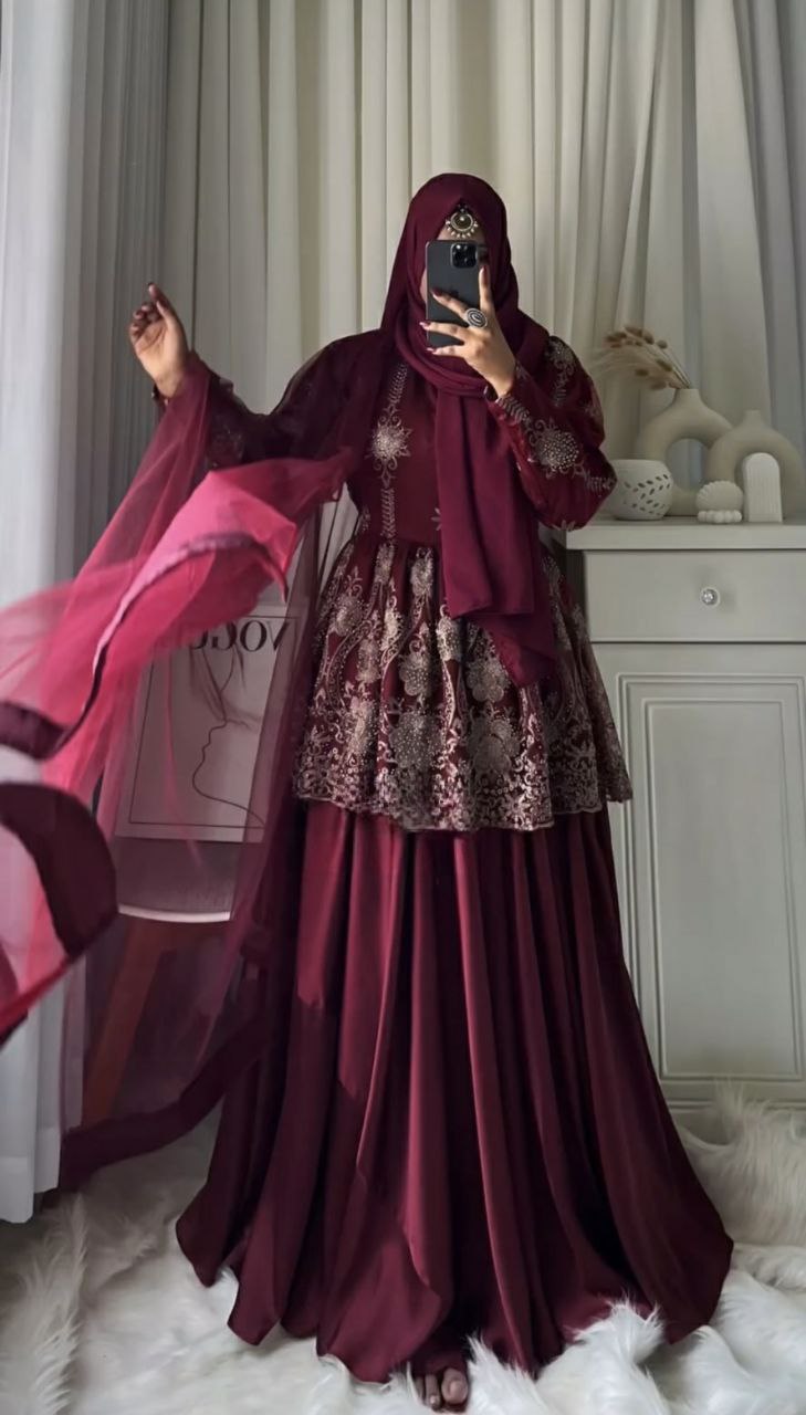 Heavy butterfly Net With Hand Work Diamond Work Embroidery Work With Sleeve Top And Botto Set
