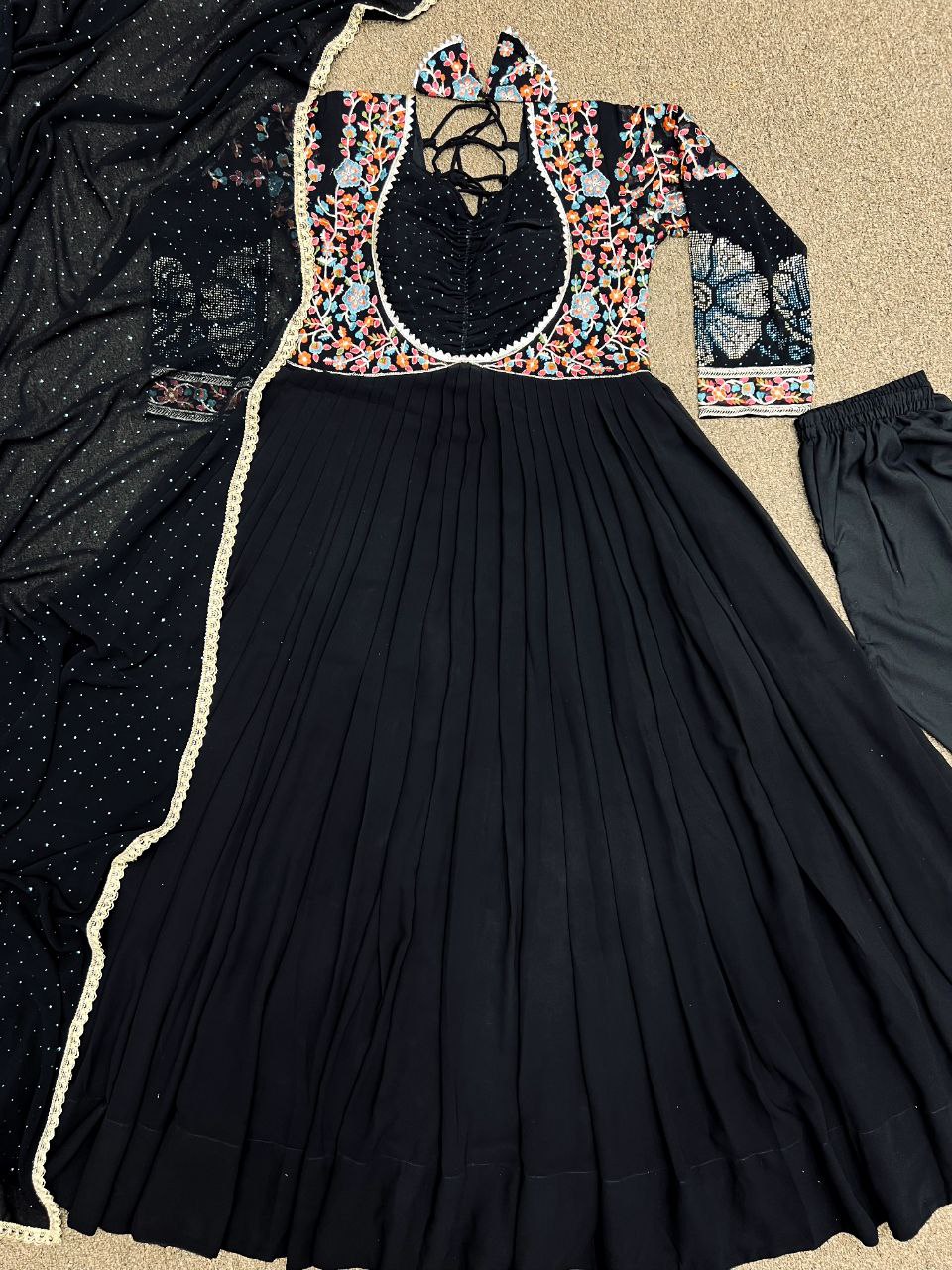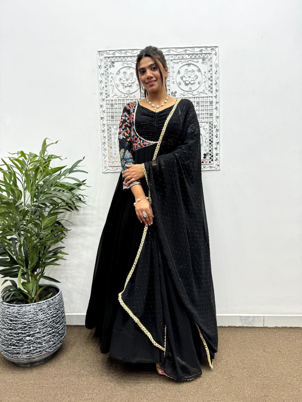 Heavy Faux Georgette And Sleeve With Work Black Gown