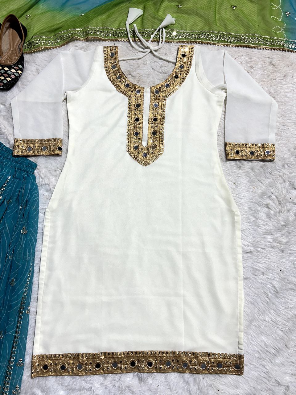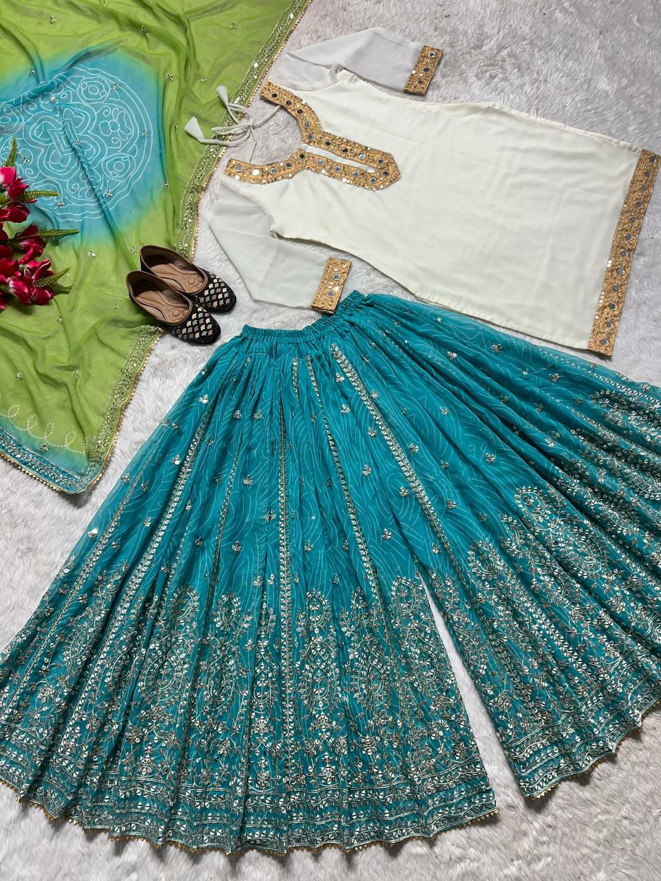 Top Fabric :- Heavy Faux Georgette Fabric With Heavy Embroidery 5mm Sequence Work And Hand MirrorWork. (Fully Sleeve’s) Top inner :- Heavy Micro Cotton Top Length :- 37-38Inch Top Size :- M(38), L(40),XL(42),2XL(44)++++ Merging. Sharara Fabric :- Hevay Faux Georgette Fabric And Heavy Embroidery 9mm Sequence Work With Digital Print With Ready-Made Less Border. Sharara Inner:- Heavy Micro Cotton. Sharara Length :- 41-42 Inch ( FullyStitched) Dupptta :- Heavy Faux Georgette Material With Heavy Embroidery 5mm Sequence Work With Digital Print and Ready-Made Four Side Less. ( Dupptta Length 2.30 Mtr )