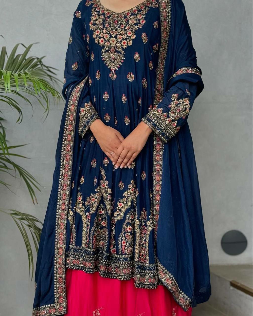 Heavy Faux Georgette With Heavy Embroidery 5 mm Sequence Work With Sleeve With Tassels Sharara Pair