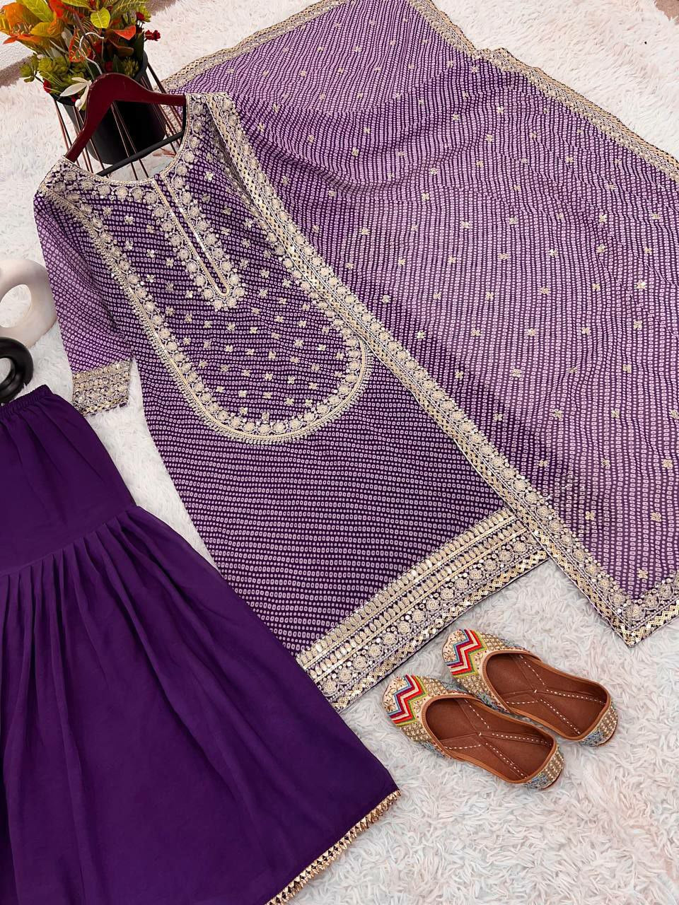 Heavy Faux Georgette With Heavy Embroidery Sequence Work Beautiful Digital Print With Full Sleeve Sharara
