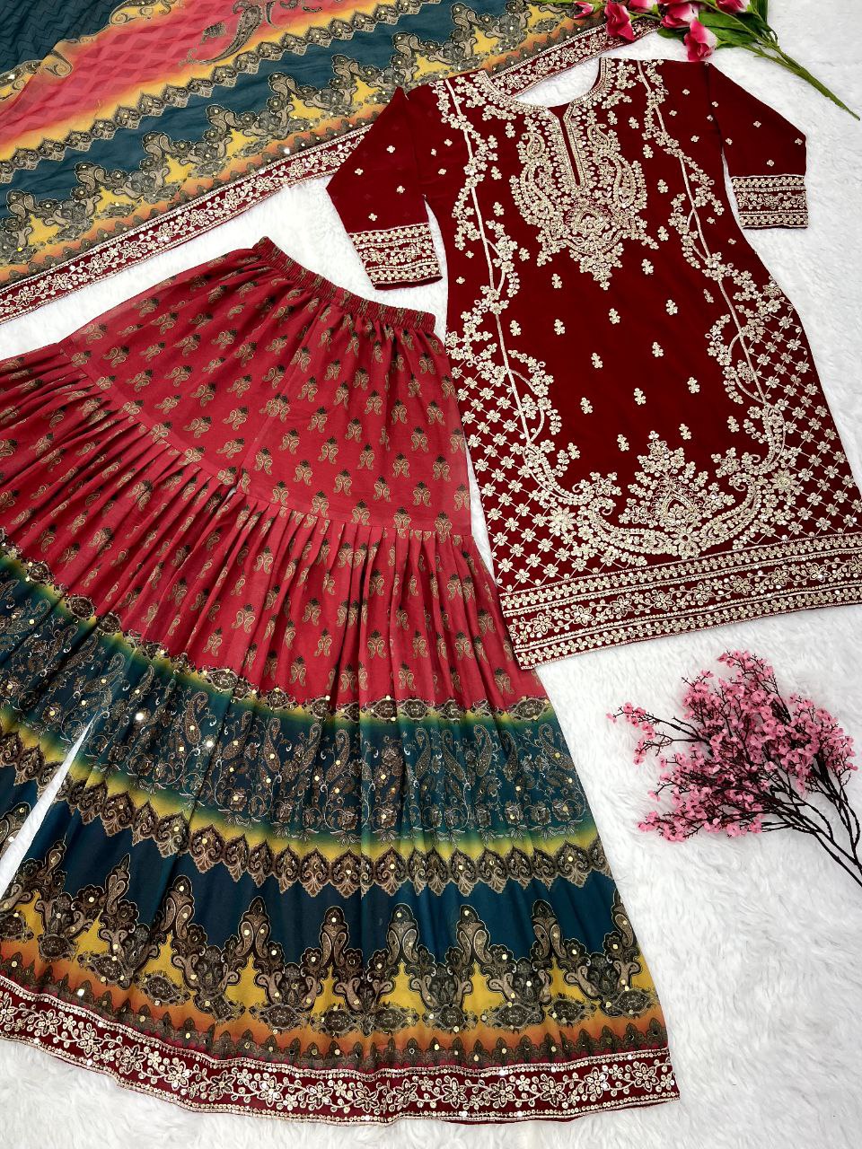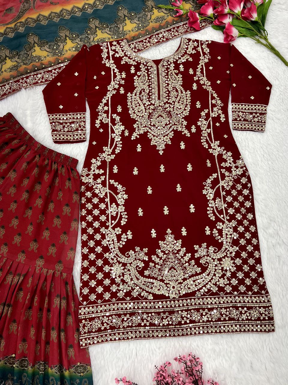Heavy Faux Georgette with Heavy Embroidery Sequence Work With Full Sleeve KURTI