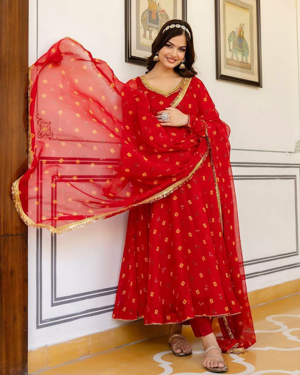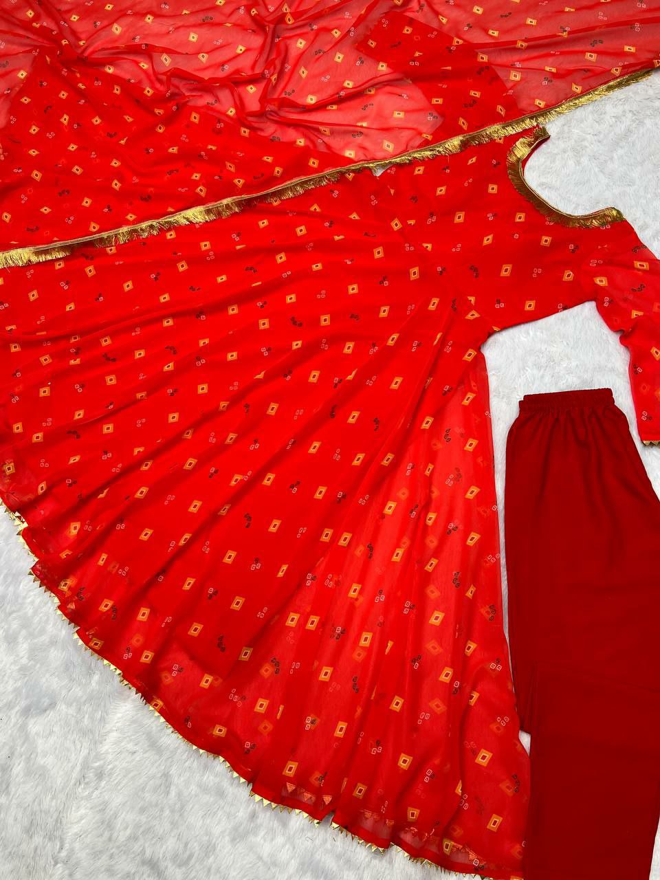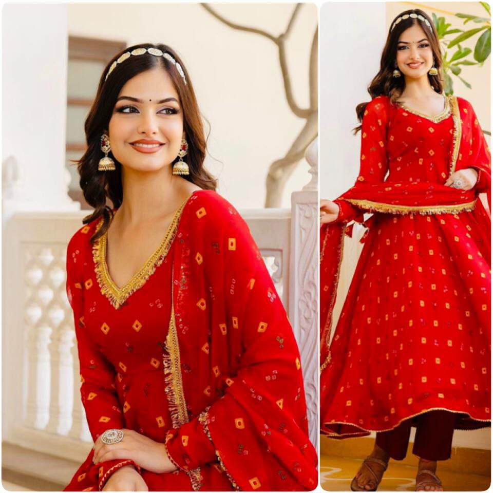 Heavy Faux Georgette WORK :-fancy digital print with lace border and stitched pad Gown In sylish Design