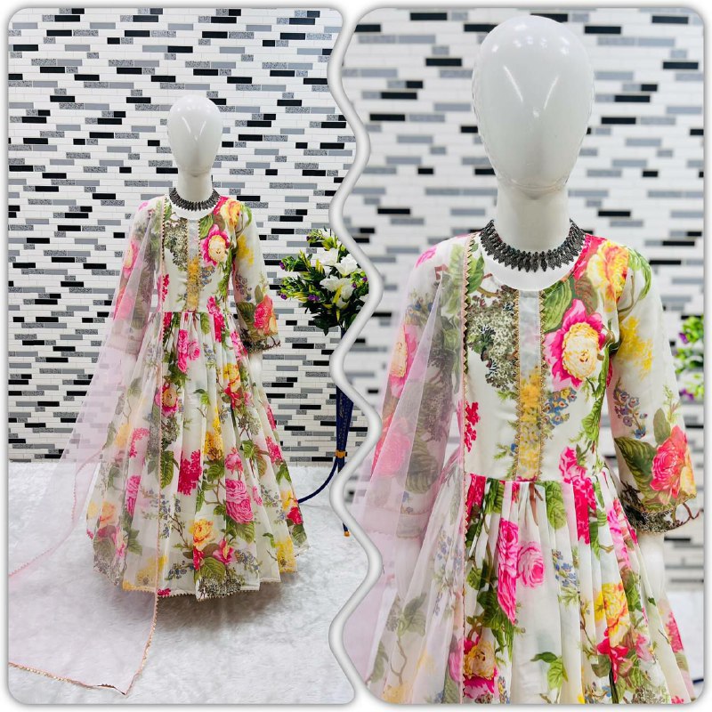Heavy Fox Georgette With Digital Print work With Dori and Lace Gown