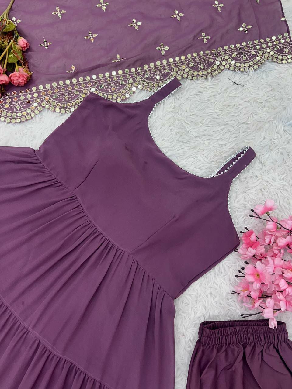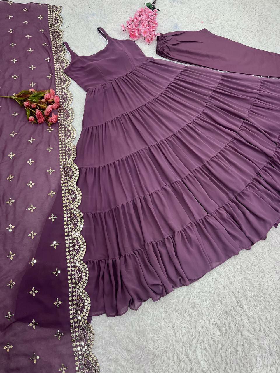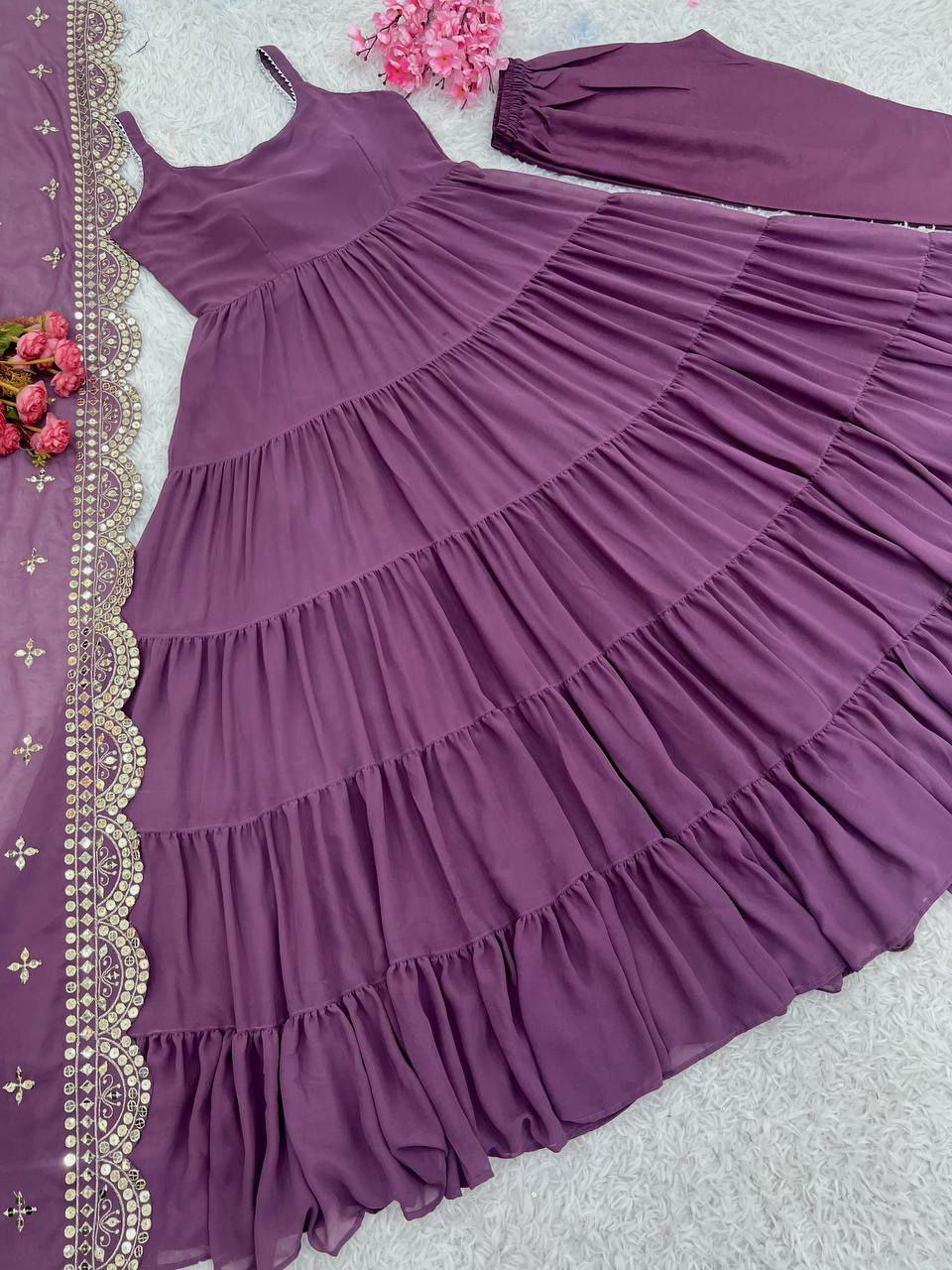 Heavy Georgette With attached Pad With Extra Sleeve Fabric and Fully 10 Meter Ruffle Flair Gown