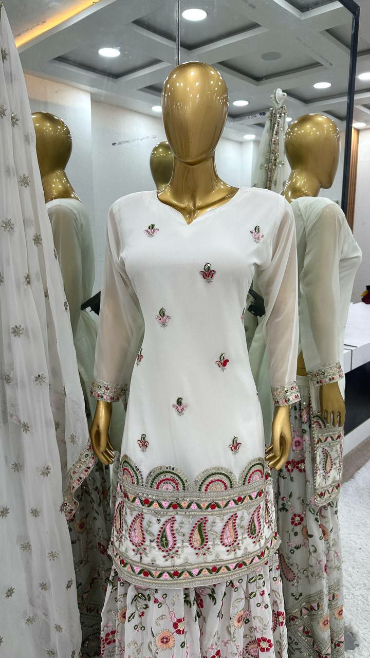 Heavy Georgette With Malty Thread Embroidery Sequence Work with Sleeve White Kurti