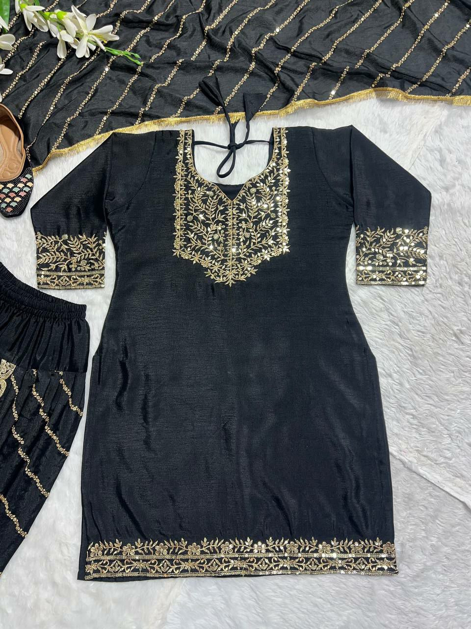 Heavy Pure Chinon With Heavy Embroidery 5mm Sequence Work With Sleeve Patiyala Dress