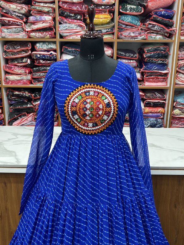 HEAVY PURE SOFT FOX GEORGETTE LAHERIYA PRINT BlUE KURTI
