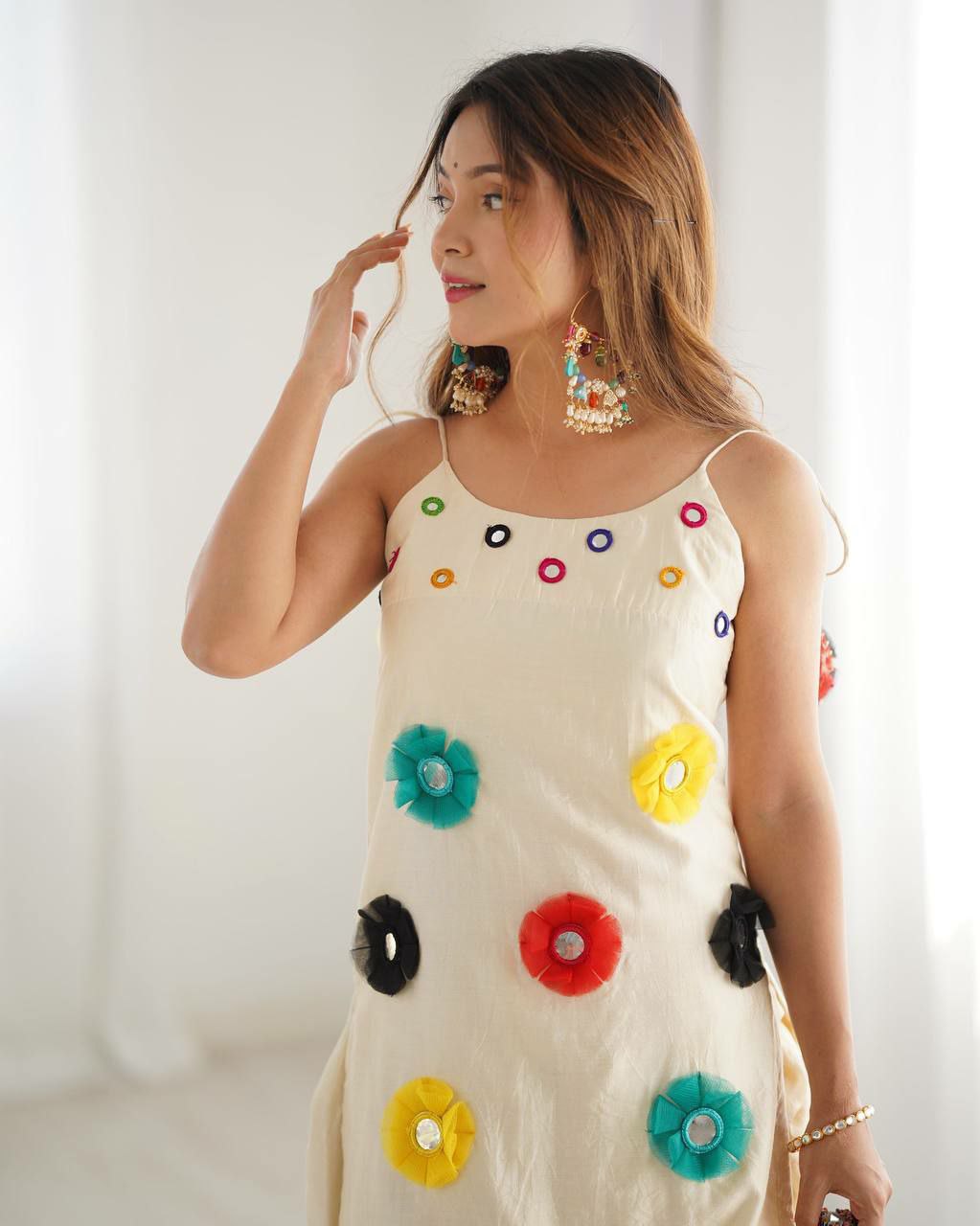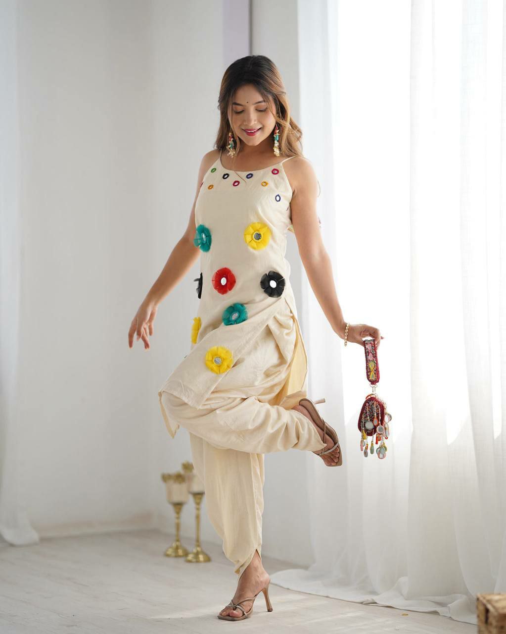 Khadi Cotton And Mirror Khatli Work With Elastic Dhoti Salwar
