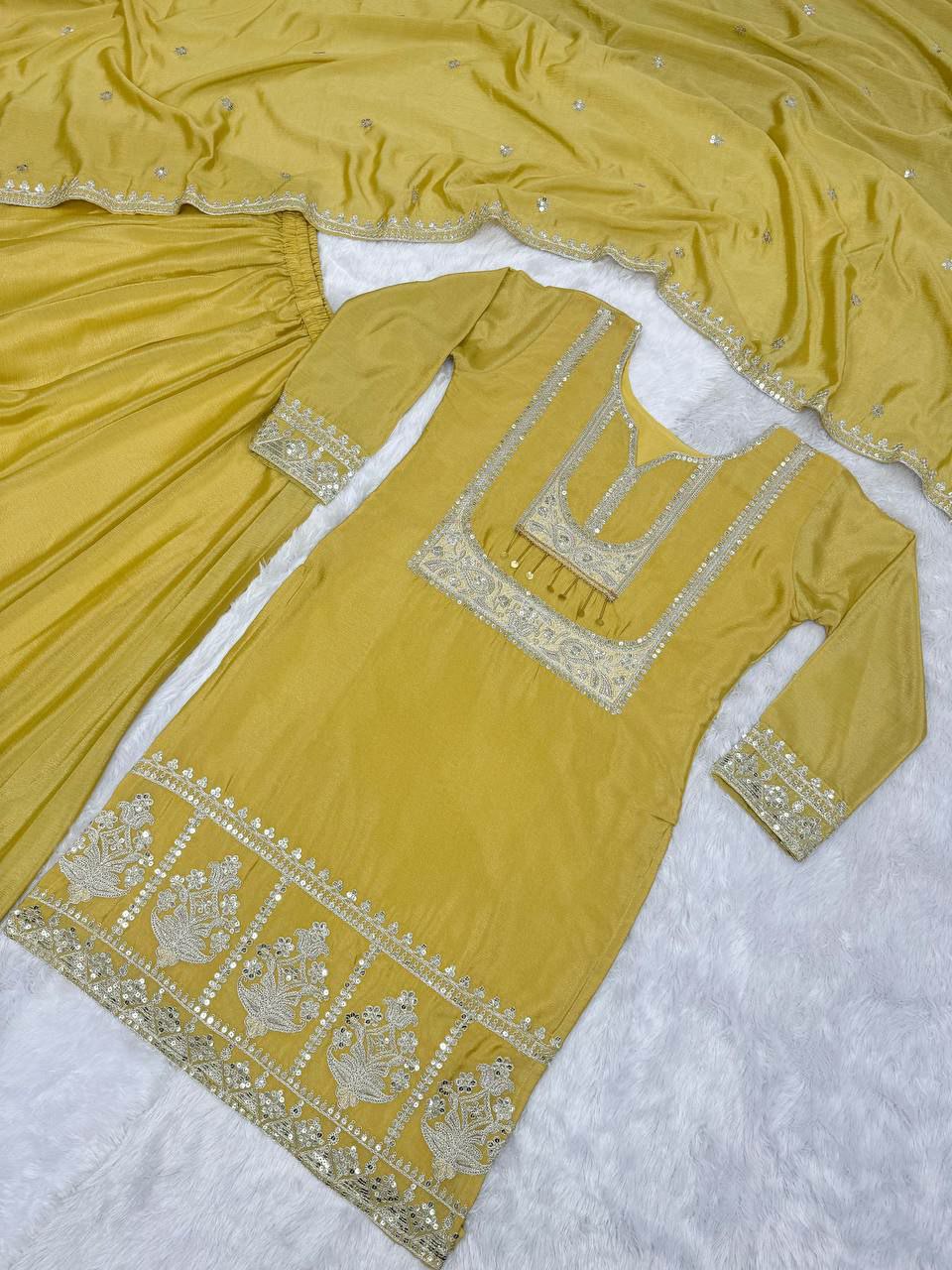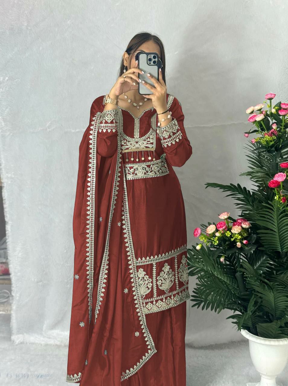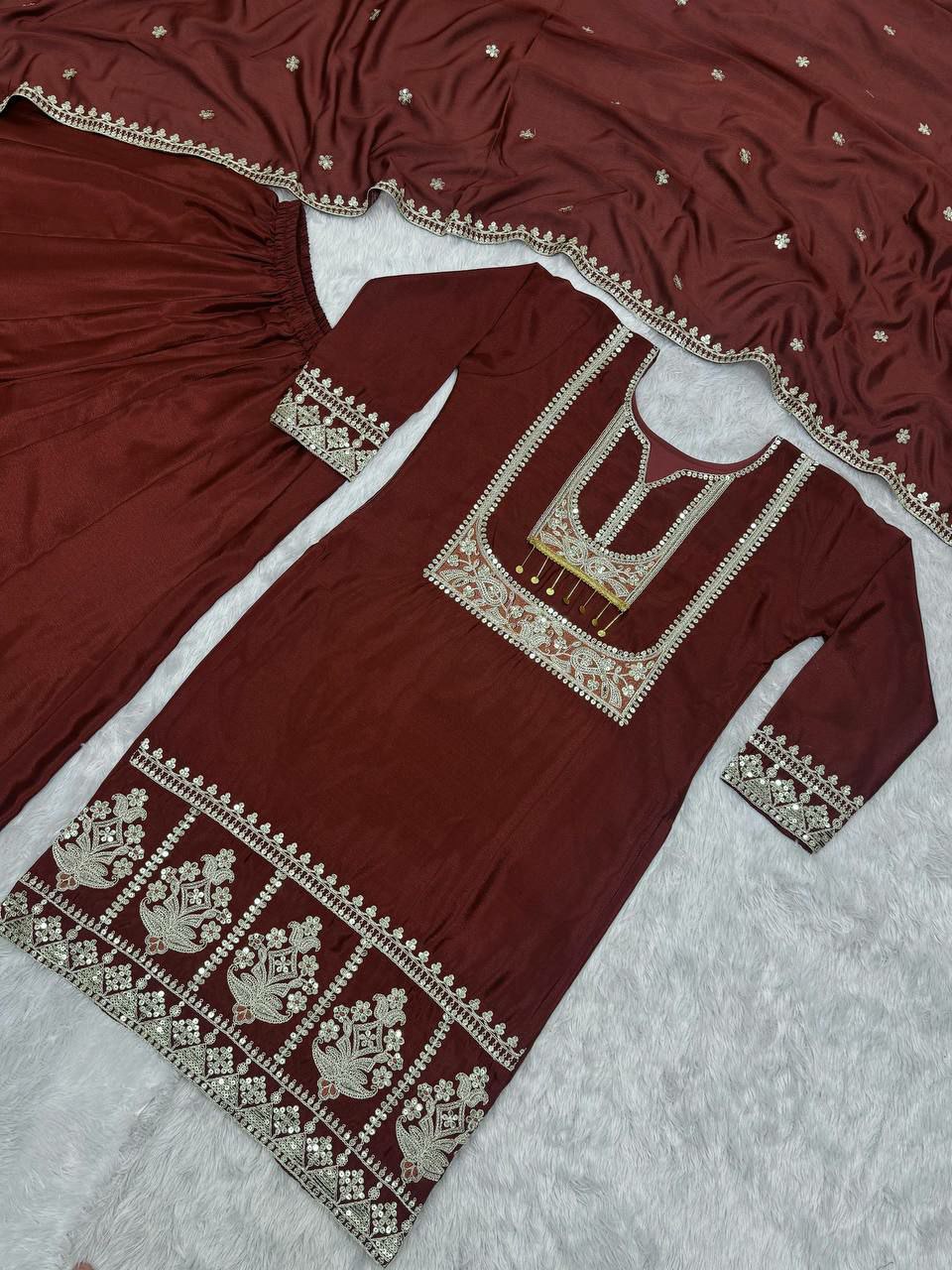 Launching New Beautiful Designe Collection Fancy Embroidery Sequins And Coding Dori Work Top - Plazzo With Dupatta