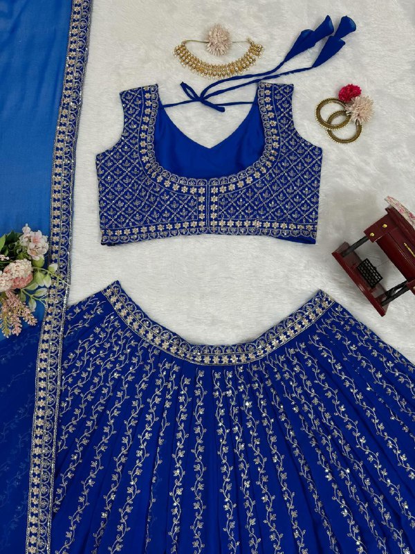 Lehengha Choli Sequnce with thread with fourside lace broder