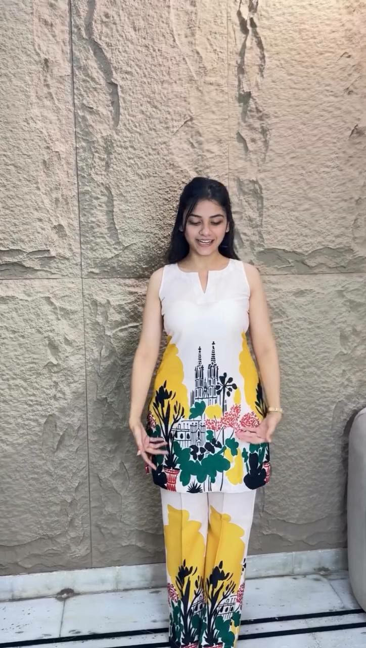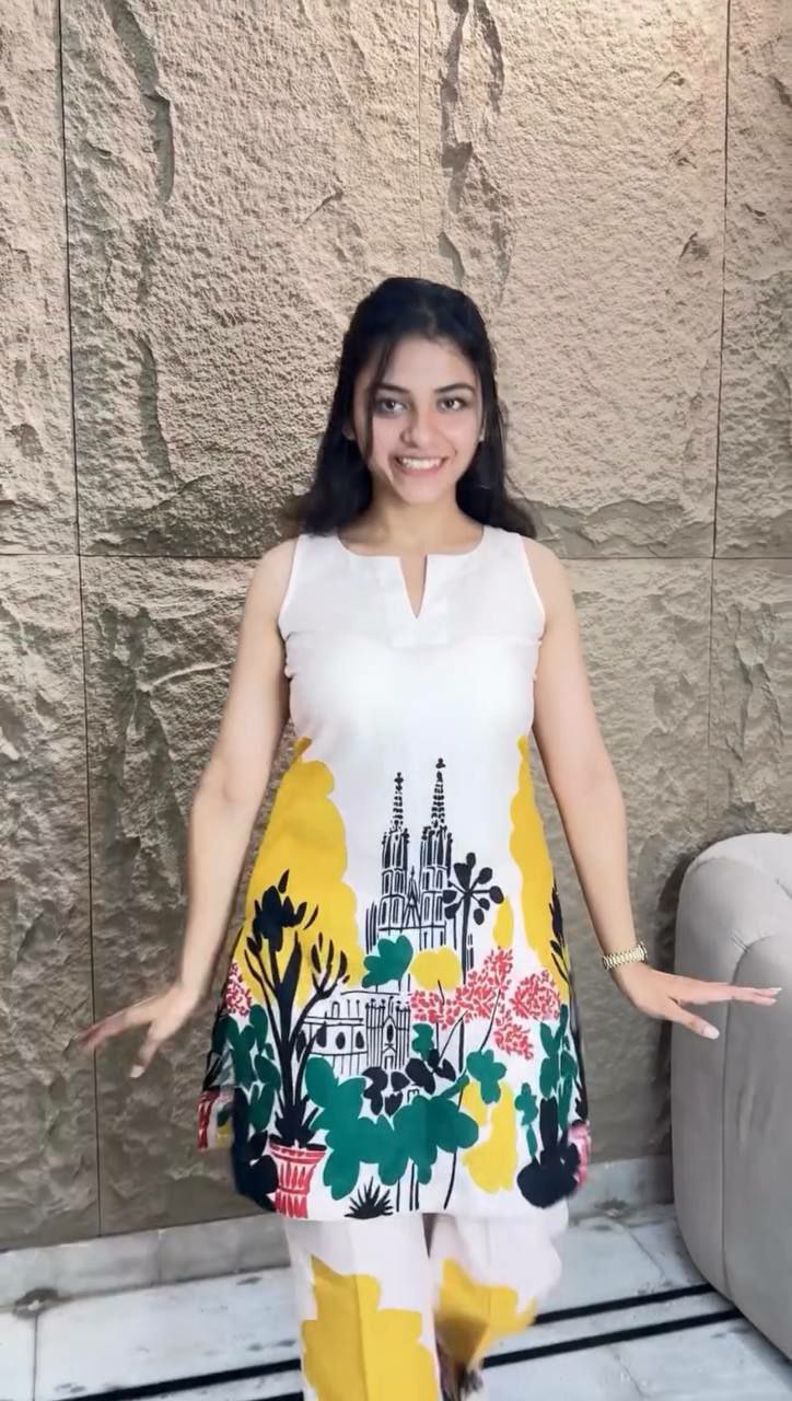 Natural Butter Blue Cotton And Digital Print With Elastic Type Suit