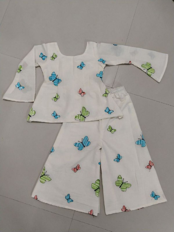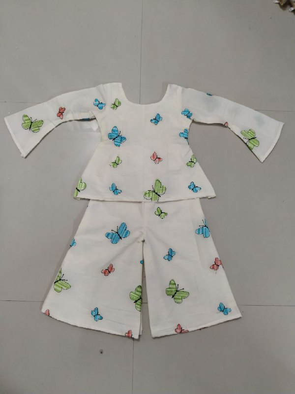POUR COTTON MULTI THREADS BELL SLEEVE TOP WITH AND PLAZZO