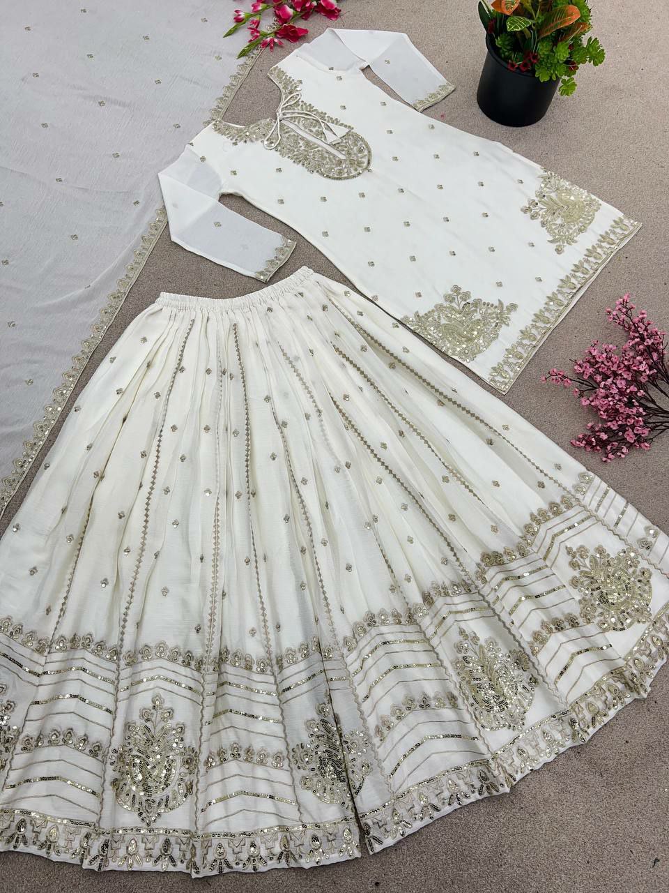 Pure Chinnon Silk With Heavy Embroidery Sequence Work And Full Sleeve Sharara