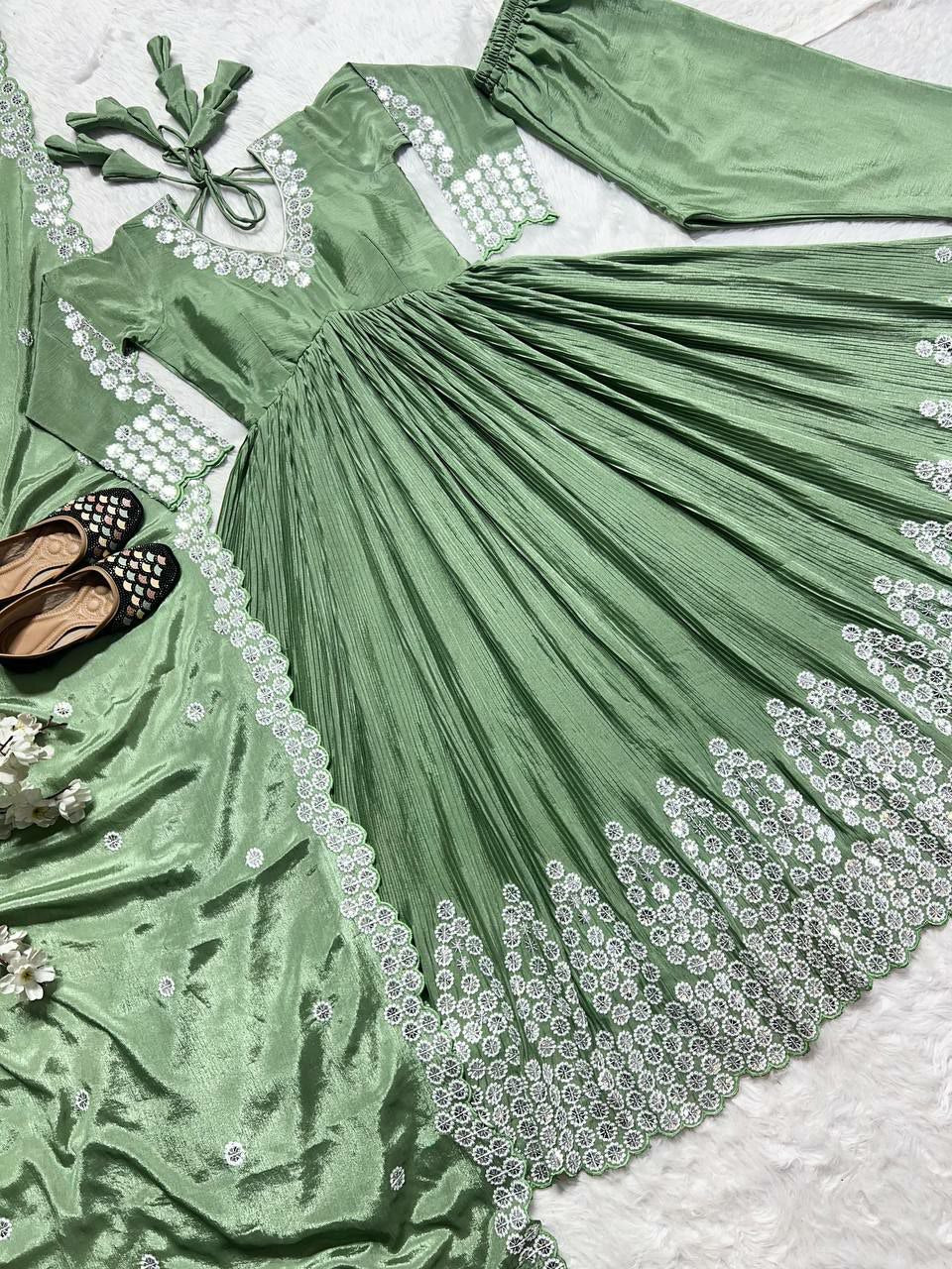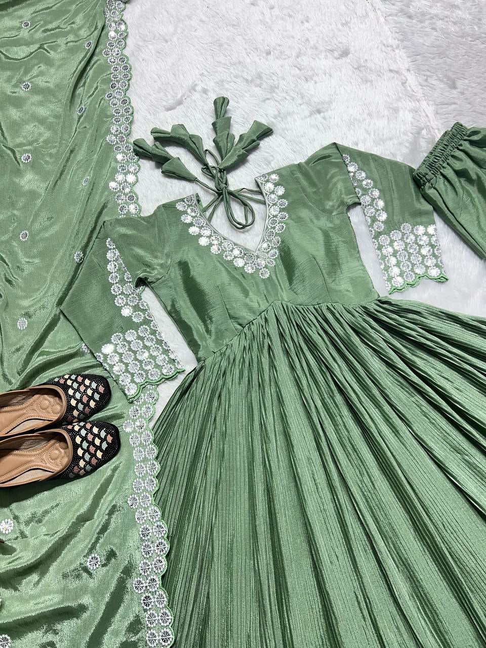 Pure Chinon Silk & Crush With 5mm Sequence Embroidery Work With Fancy Full Sleeves ANARKALI
