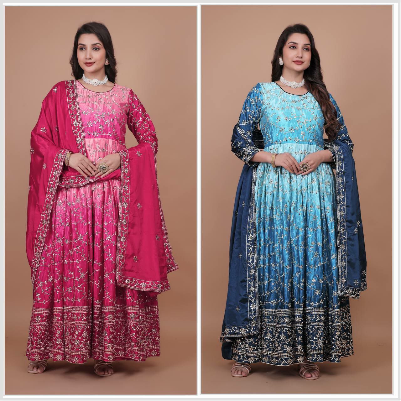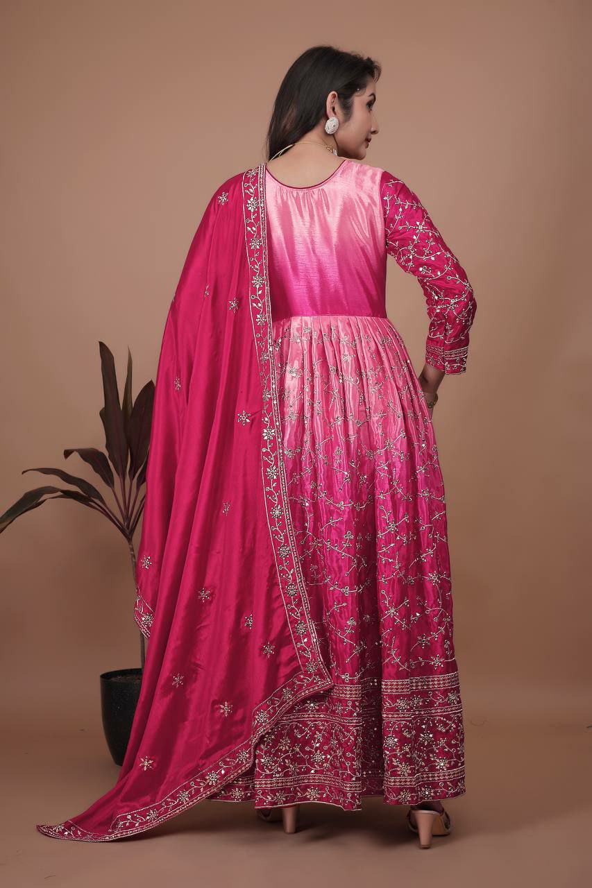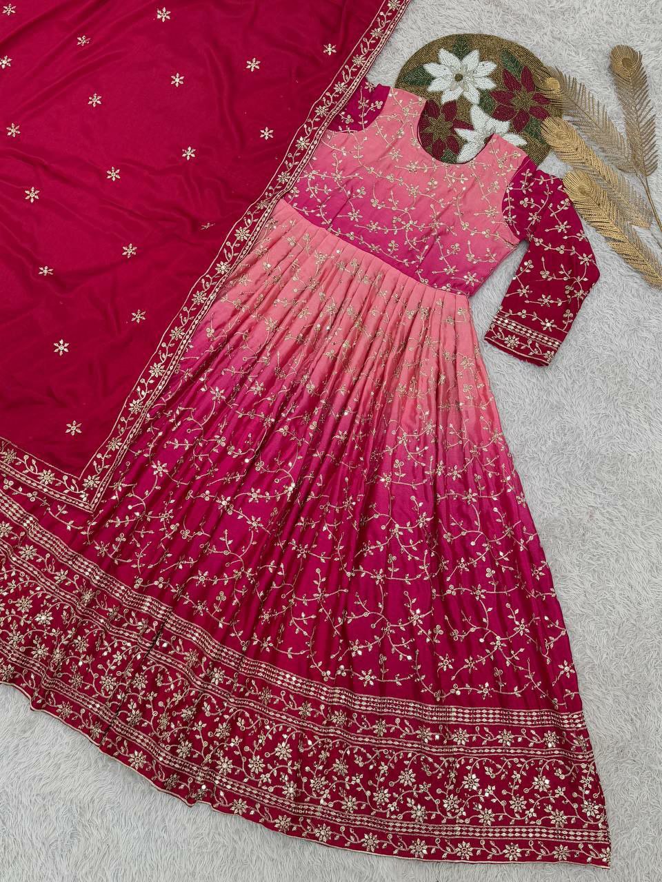 Pure Chinon Silk With Micro Cotton Inner & Embroidery And Sequins Work Gown