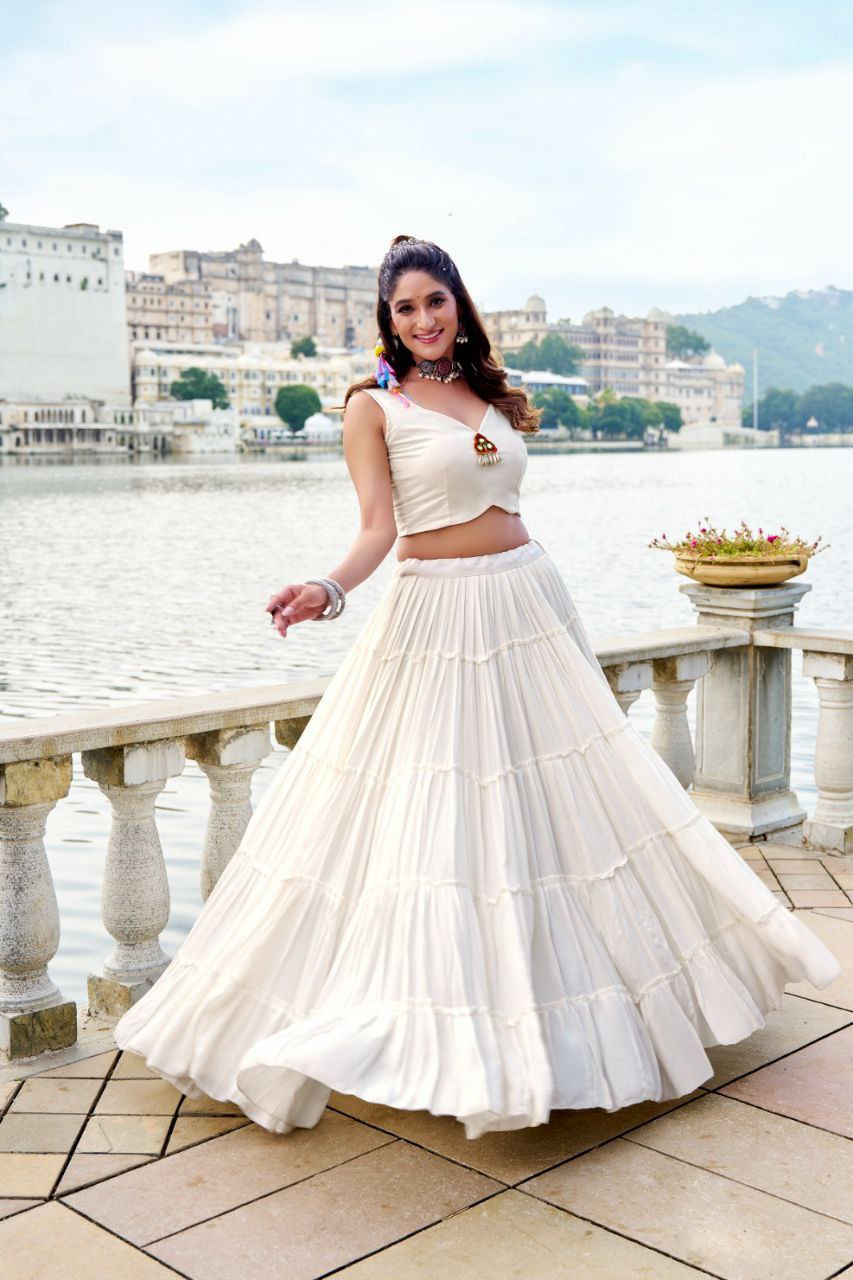 Pure Rayon With Original Mirror Gamthi Work With Cowrie Lace Touch Up With Canvas Lehenga Choli
