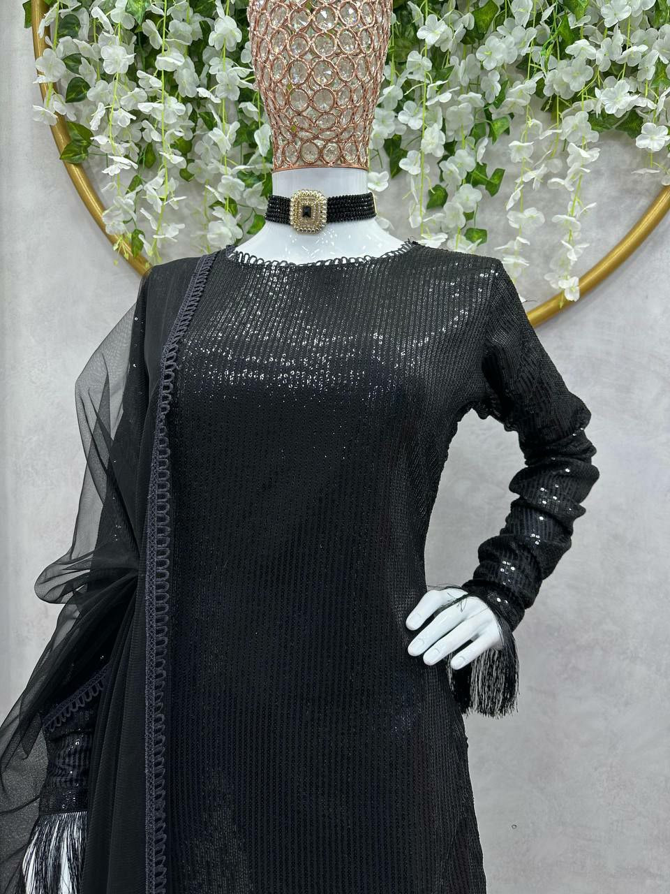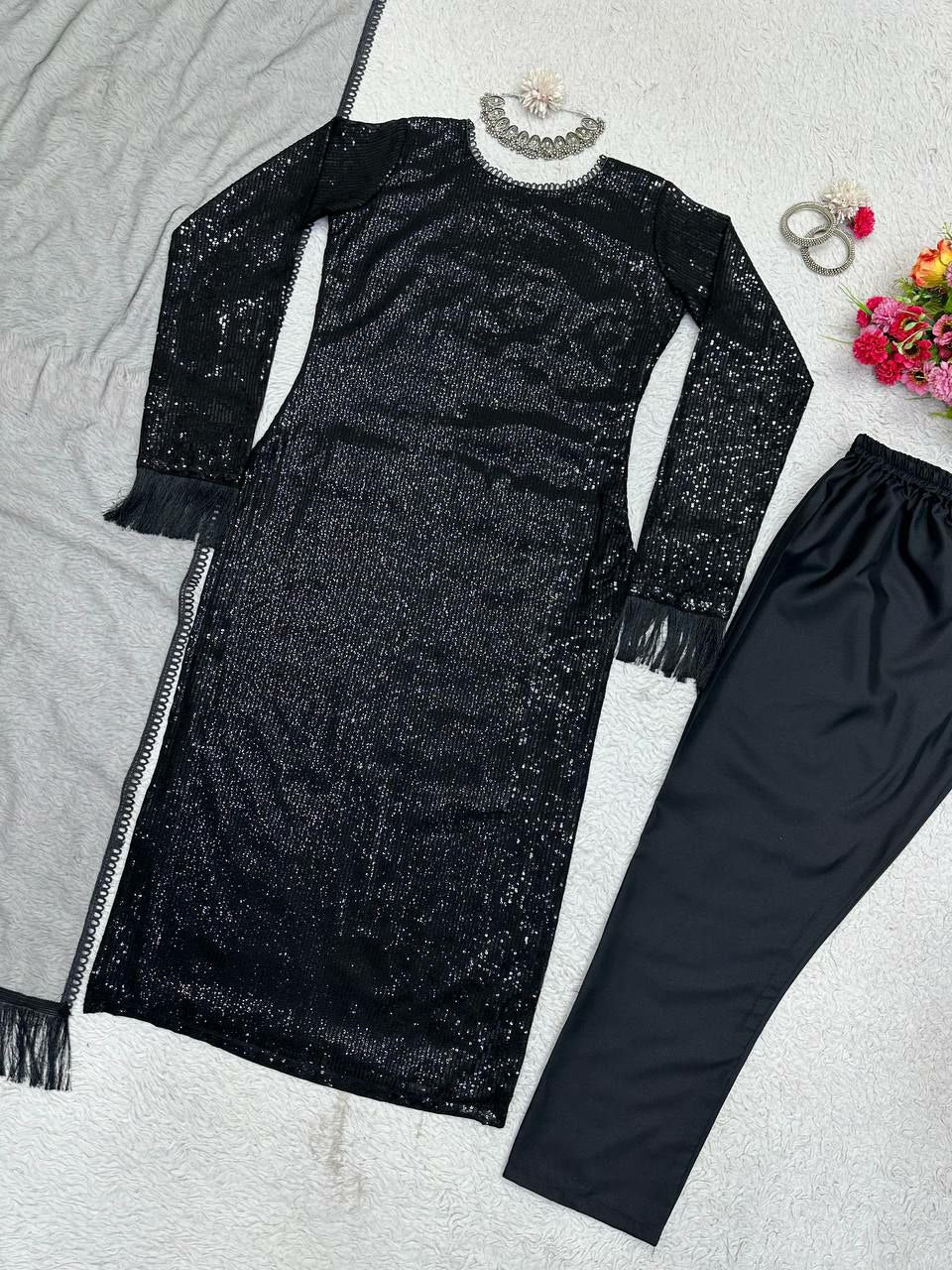 Designer Suit On Faux Georgette febric with inner and Sequnce work and Pent on Crep Febric and Dupatta on Soft Net Febric with Fancy Lace.
