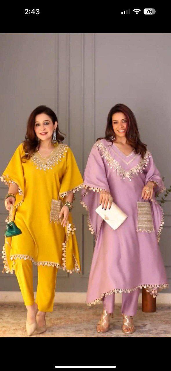 DEVSENA SATIN AND EMBROIDERED LACE WITH REAL MIRROR WORK POCKET PATTERN KAFTAN SUIT