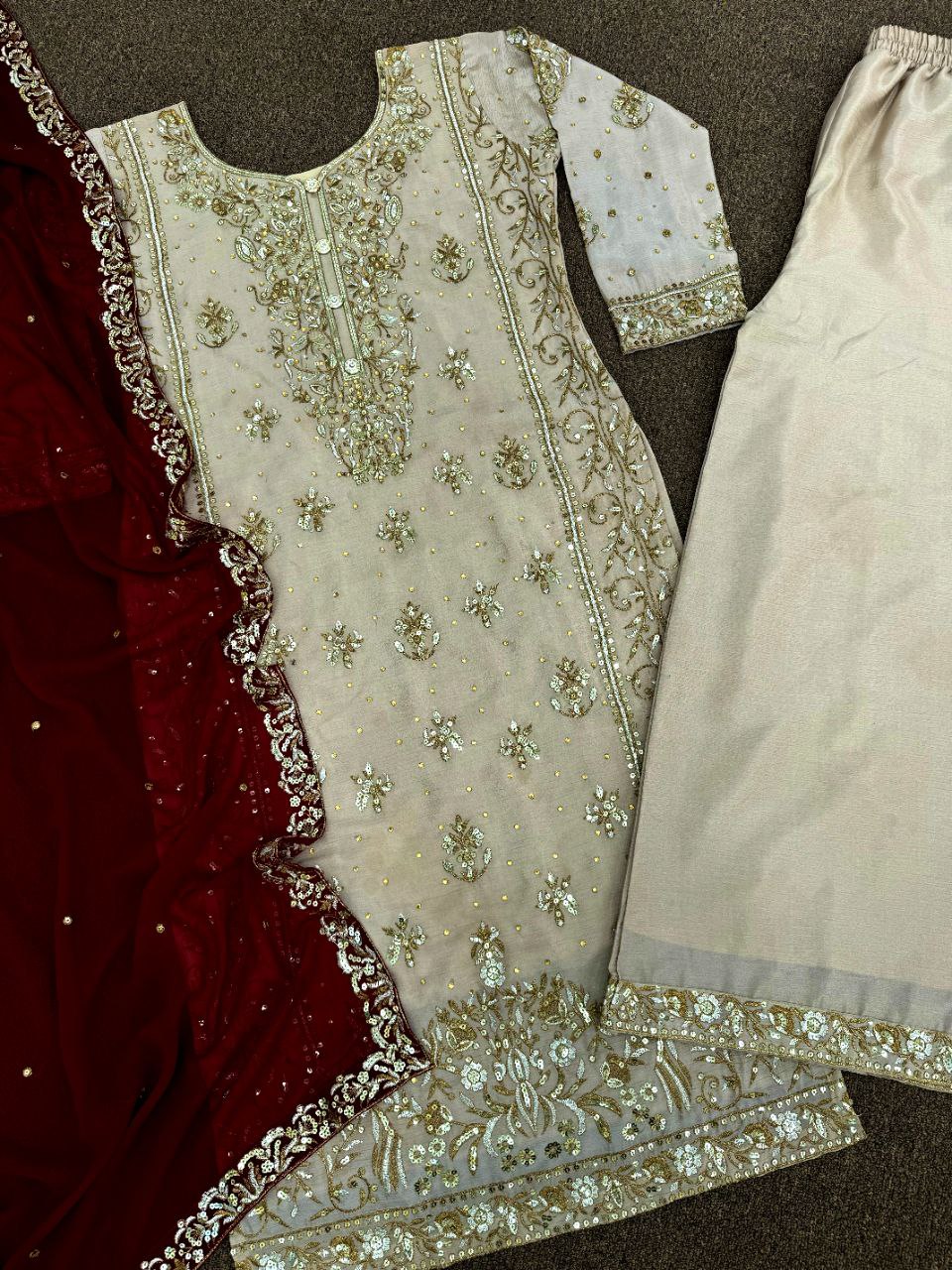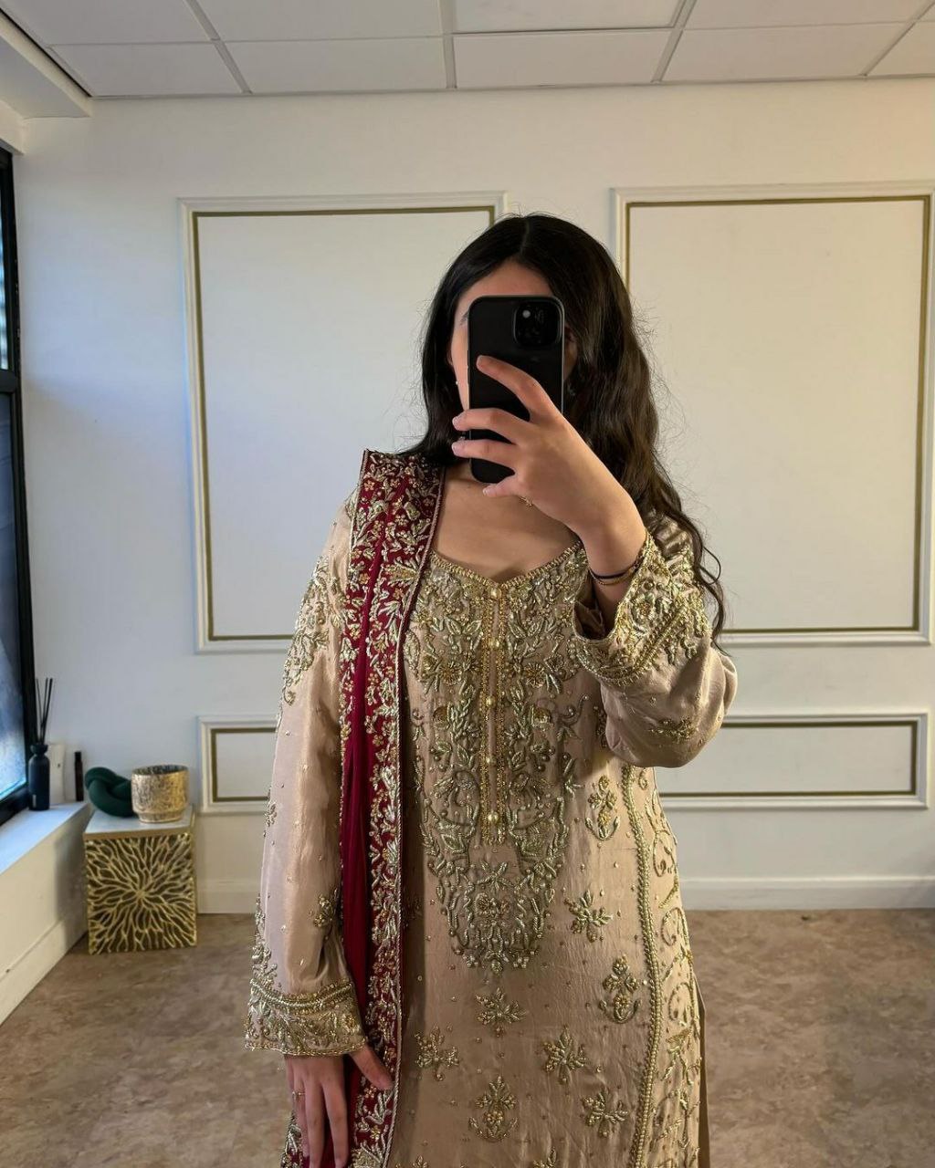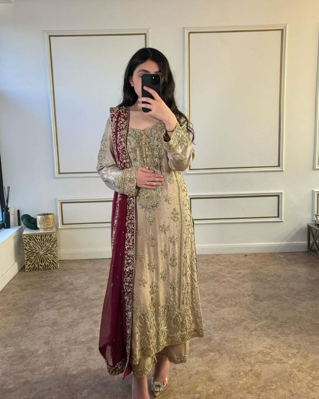 Fancy Embroidery And Sequins Work With Stone Hand Work With Unstitched Buttons Kurti