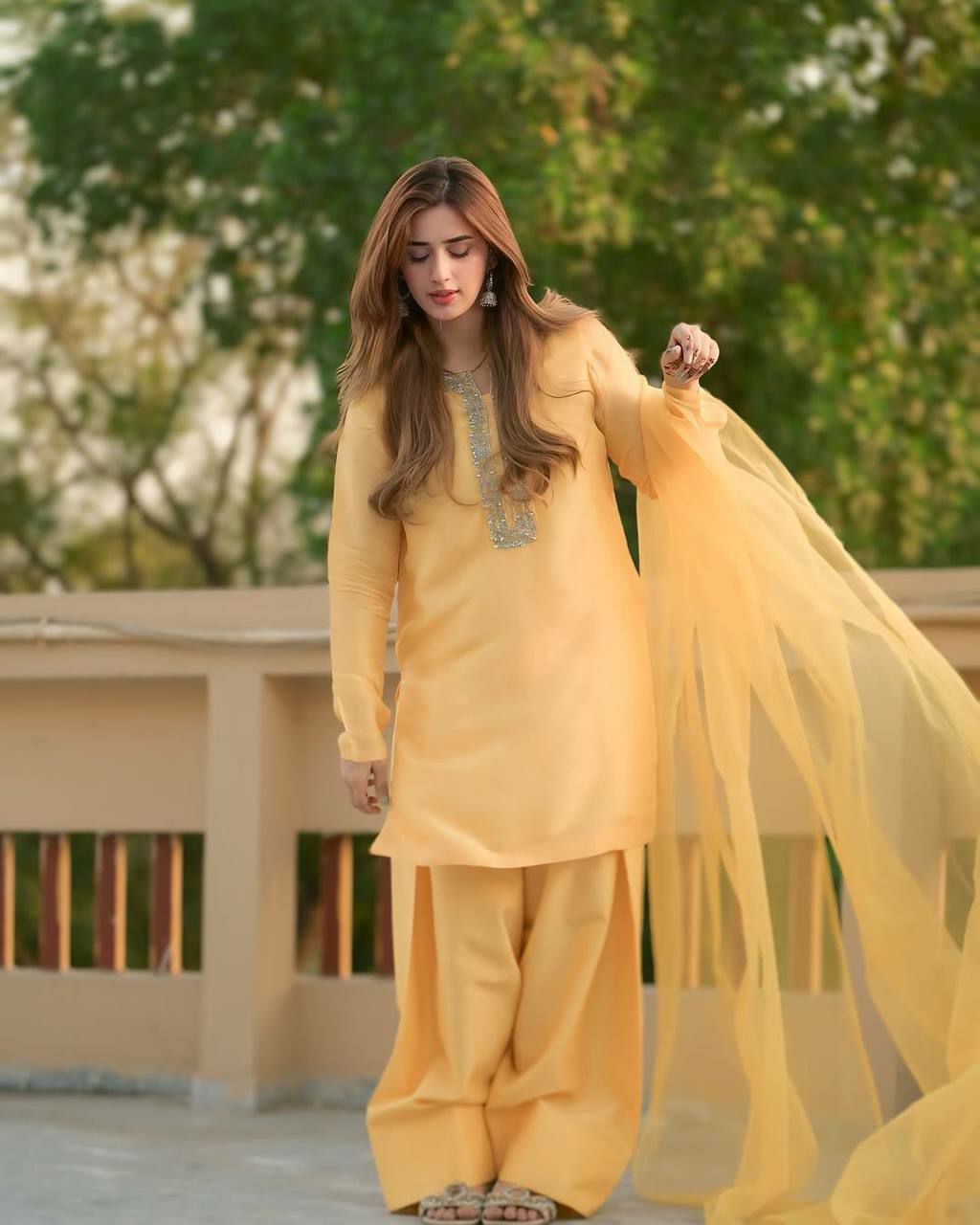 Faux Georgette With Elastic & Embroidery Work With Handwork And Beads Farshi Palazzo Dress