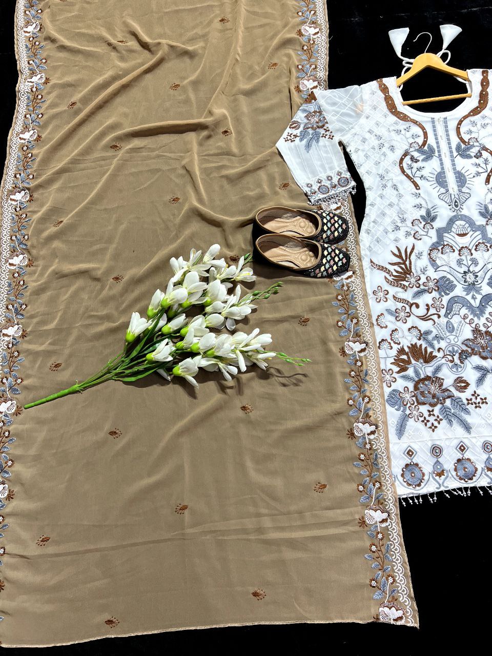 FABRIC DETAILS:- TOP FABRICS : FOX GEORGETTE WORK : REAL HAND WORK MULTI NEEDLE EMBROIDERY WORK FANCY SLEEVE MOTI LACE WORK INNER : MICRO HEIGHT : 42-43”inch. TOP SIZE : M-38” ,L-40” ,XL-42” ,XXL-44” PENT DETAIL FABRICS : FOX GEORGETTE MULTI NEEDLE EMBROIDERY WORK PENT SIZE : FREE SIZE (FULLSTITCHED) HEIGHT : 38”inch DUPATTA DETAIL _Fox Georgette With multi needle  Embroidered work Dupatta (2.3mtr)_