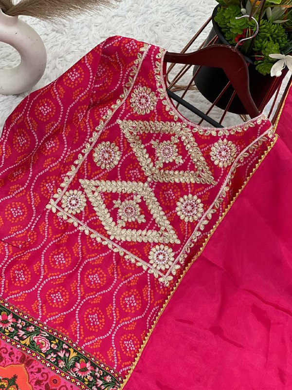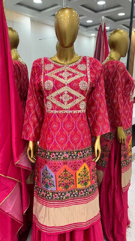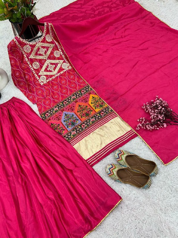 Heavy Chinnon With Heavy Embrodery Coding Sequence Work With Beautiful Digital Print Work and Heavy Patta Work with Full Sleeve Kurti Set