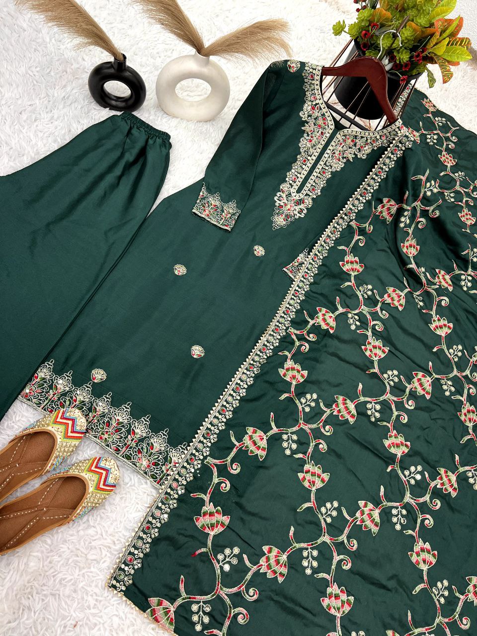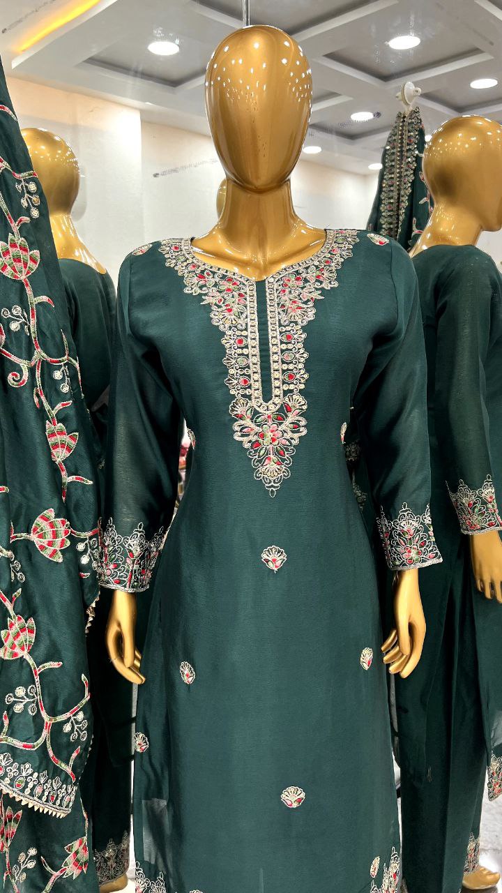Heavy Chinon Silk With Malty Thread Embroidery Sequence Work with Sleeve Kurti