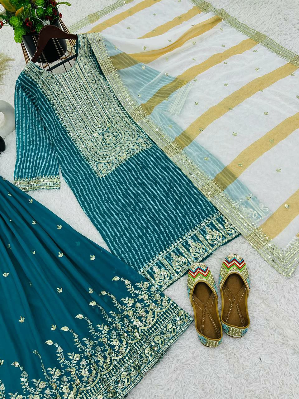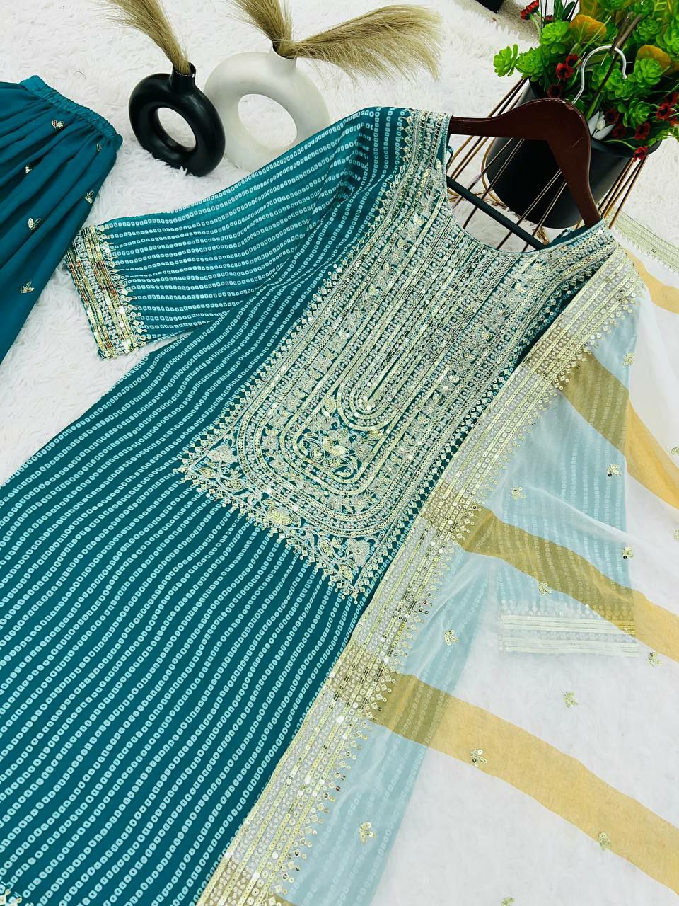 Heavy Faux Georgette With 5mm Embroidery Sequence Work With Beautiful Digital Print With Full Sleeve