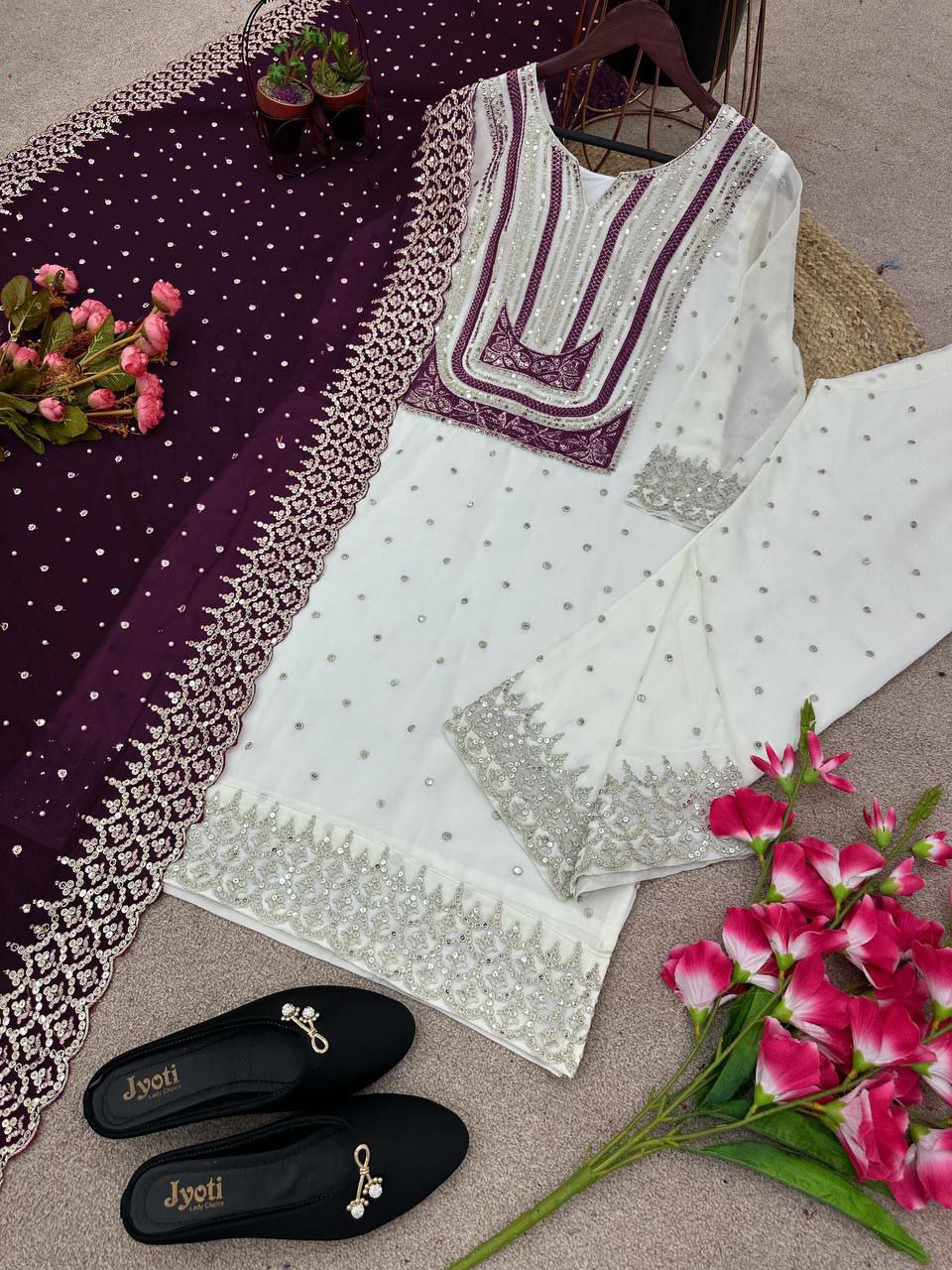 Heavy Faux Georgette With Heavy Embroidery Sequence Work with Full Sleeve Kurti Pair
